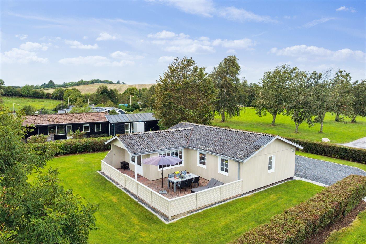 Velholdt sommerhus beliggende nær badestrand med udsigt til Lillebælt fra grunden. Huset ligger på en grund med plads til boldspil og leg i et hyggeligt sommerhusområde, der er beliggende i skønne omgivelser. I en afstand af 300 m ligger en campingplads med lille købmand, hvor der bl.a. kan købes frisk morgenbrød. Udenfor campingpladsens åbningstider, vil der være 4 km til nærmeste købmand. Det er muligt at benytte sig af Weber-grill samt dockingstation til iPod.