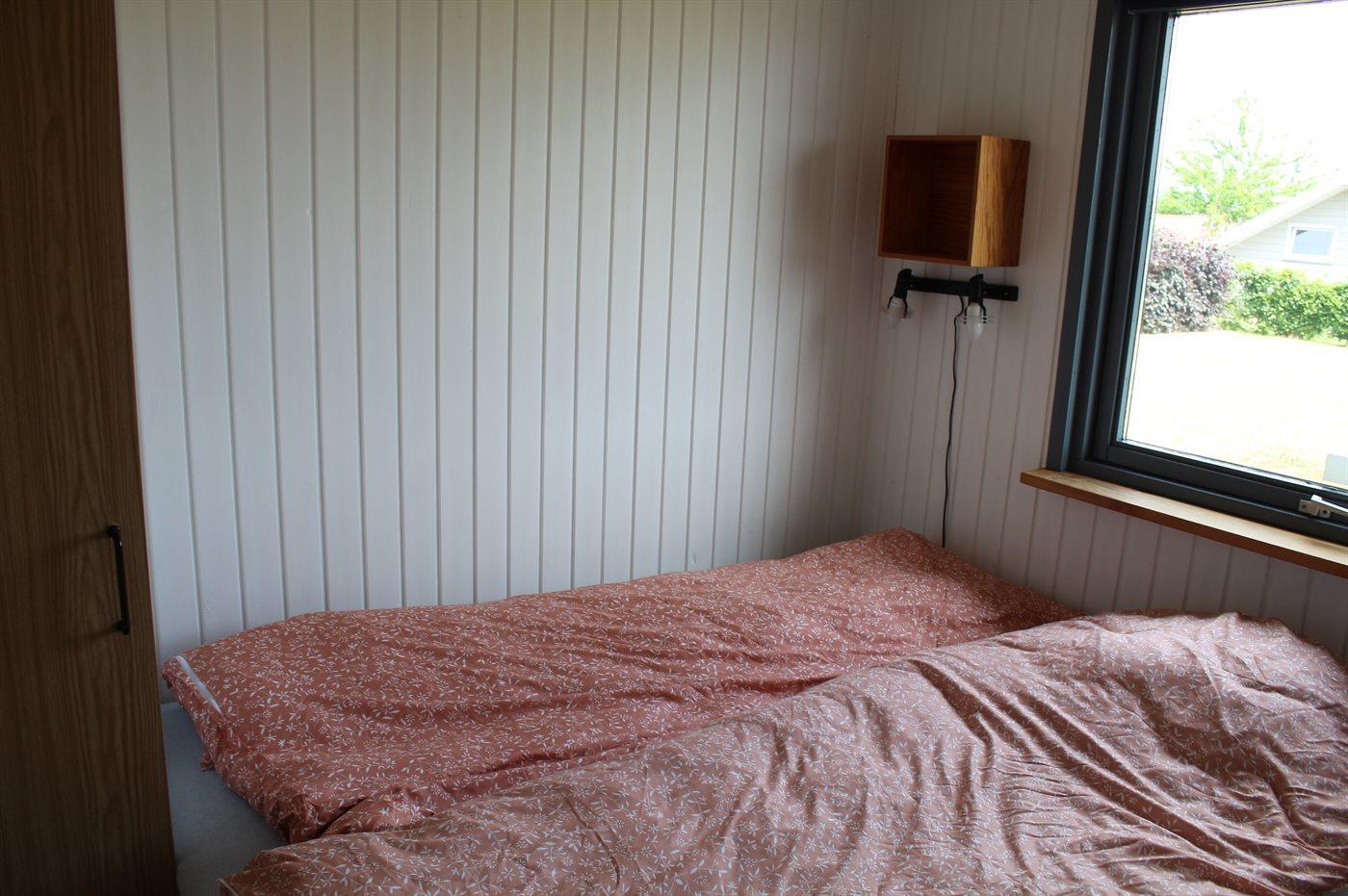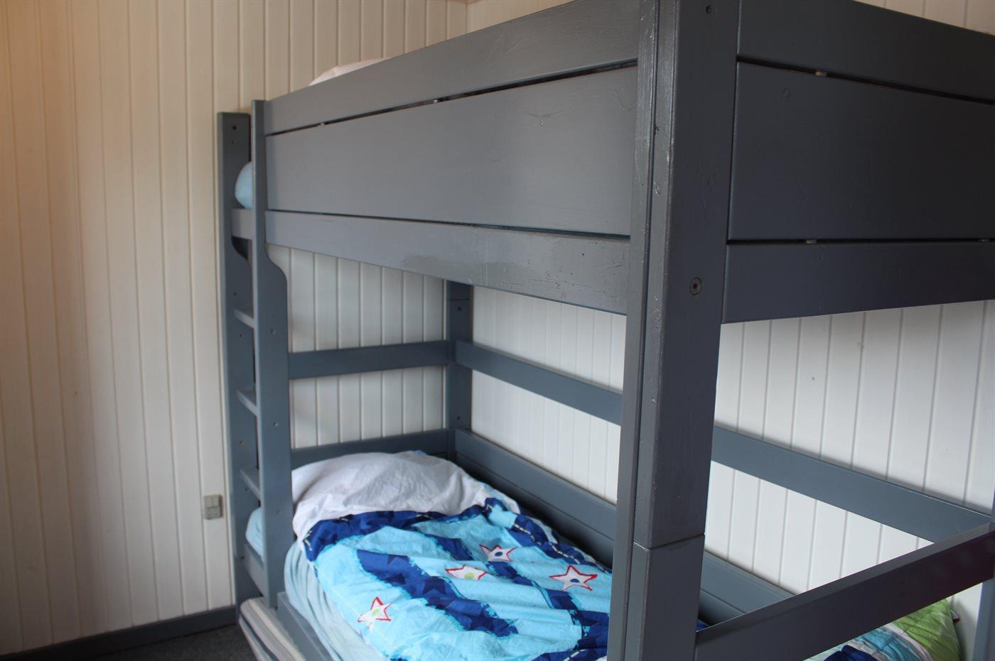 Der er i alt 3 soveværelser. Sovepladserne fordeler sig på: 4 sovepladser i dobbeltsenge. 2 sovepladser i køjeseng. Derudover er der 1 stk. barneseng.