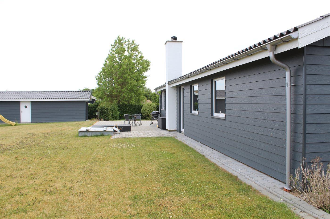 Ferieboligen er beliggende på en 750 m² stor havegrund. Der er 300 m til havet. Nærmeste forretning er beliggende i en afstand af 5000 m. Der er en golfbane i en afstand af 15000 m. Til ferieboligen hører åbent terrasseareal. Ligeledes er der adgang til udestue. Gynge. Sandkasse. Rutchebane. Grill til rådighed. Der er installeret stik til opladning af elbil. Type 2 stik. Med 11 kW ladeeffekt. Parkering ved ferieboligen.
