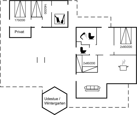Selveste huset er indrettet med to soveværelser og i annekset, som ligger i forbindelse med husets terrasse, finder du de to sidste soveværelser. Fra annekset er der kun få skridt via den flotte terrasse til badeværelset i hovedhuset.