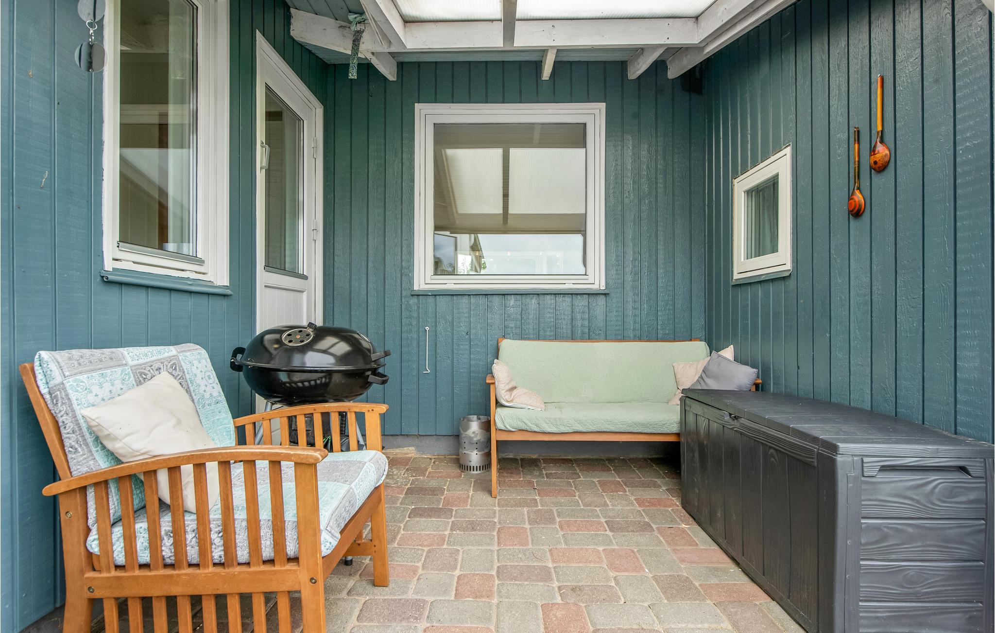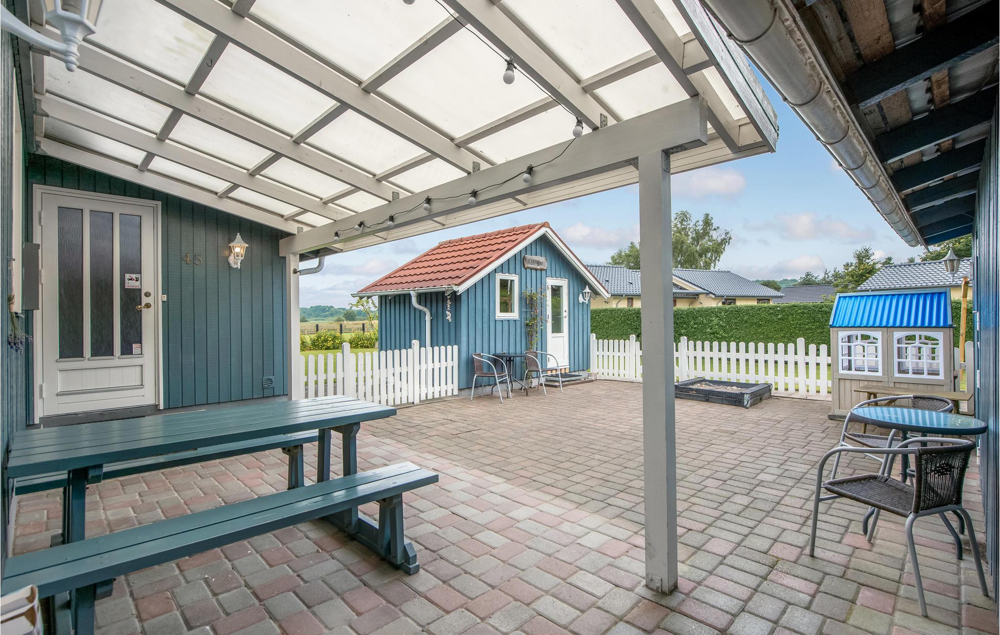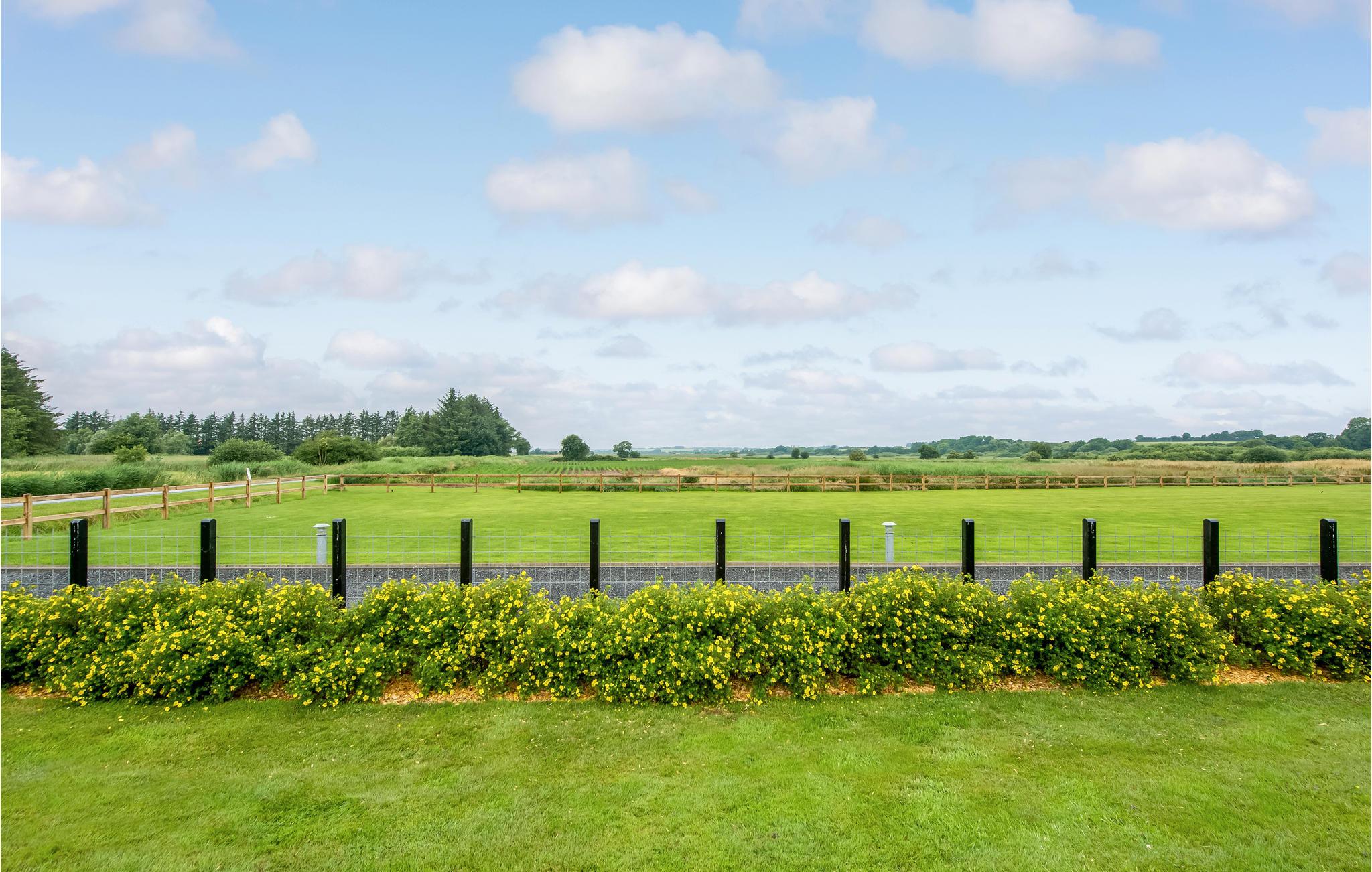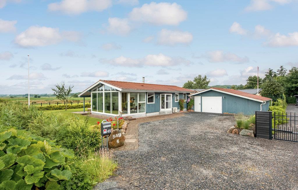Huset er lyst og rummeligt, med terasser rundt om huset, så I altid kan finde en plads i solen. I den hyggelige, aflukkede gård kan I nyde morgensolen, og børnene kan lege i sandkassen og legehuset. På den modsatte af side af huset kan I sidde i eftermiddagssolen, mens I nyder omgivelserne og dyrelivet.