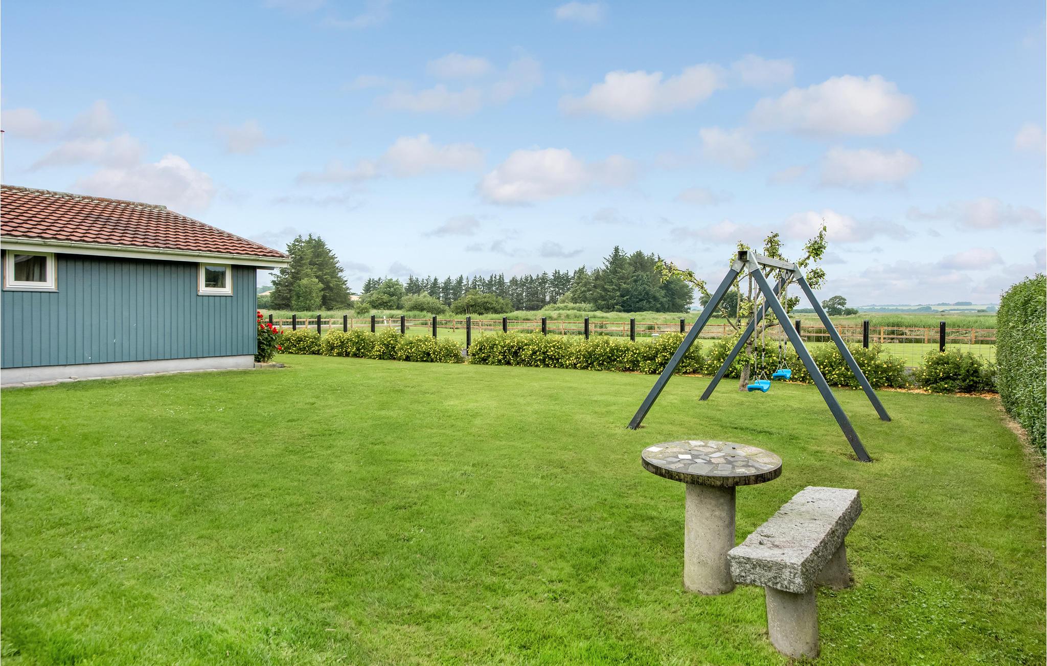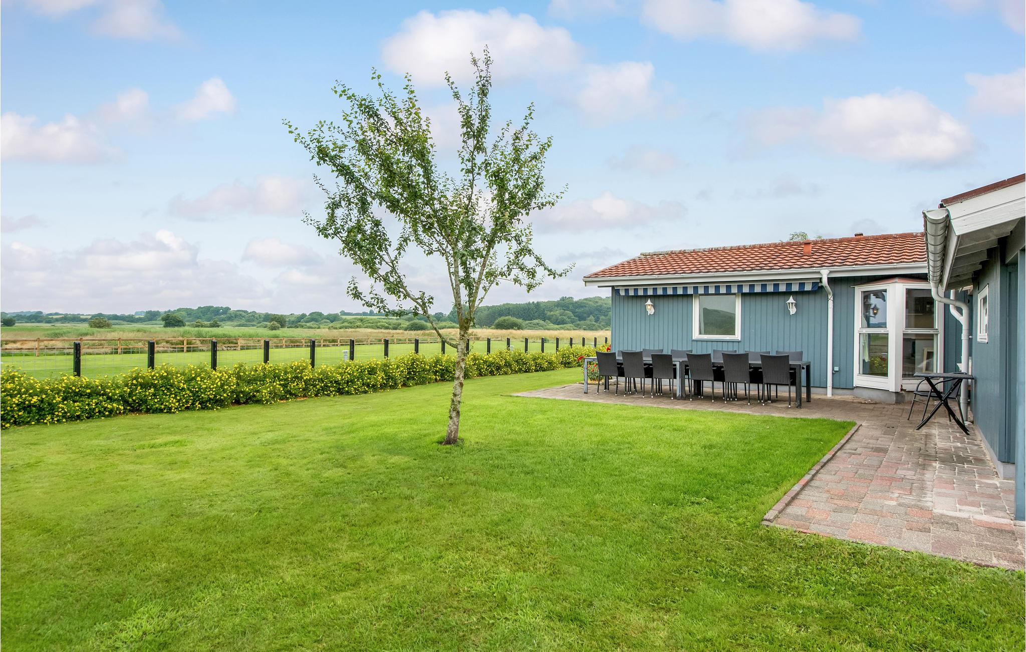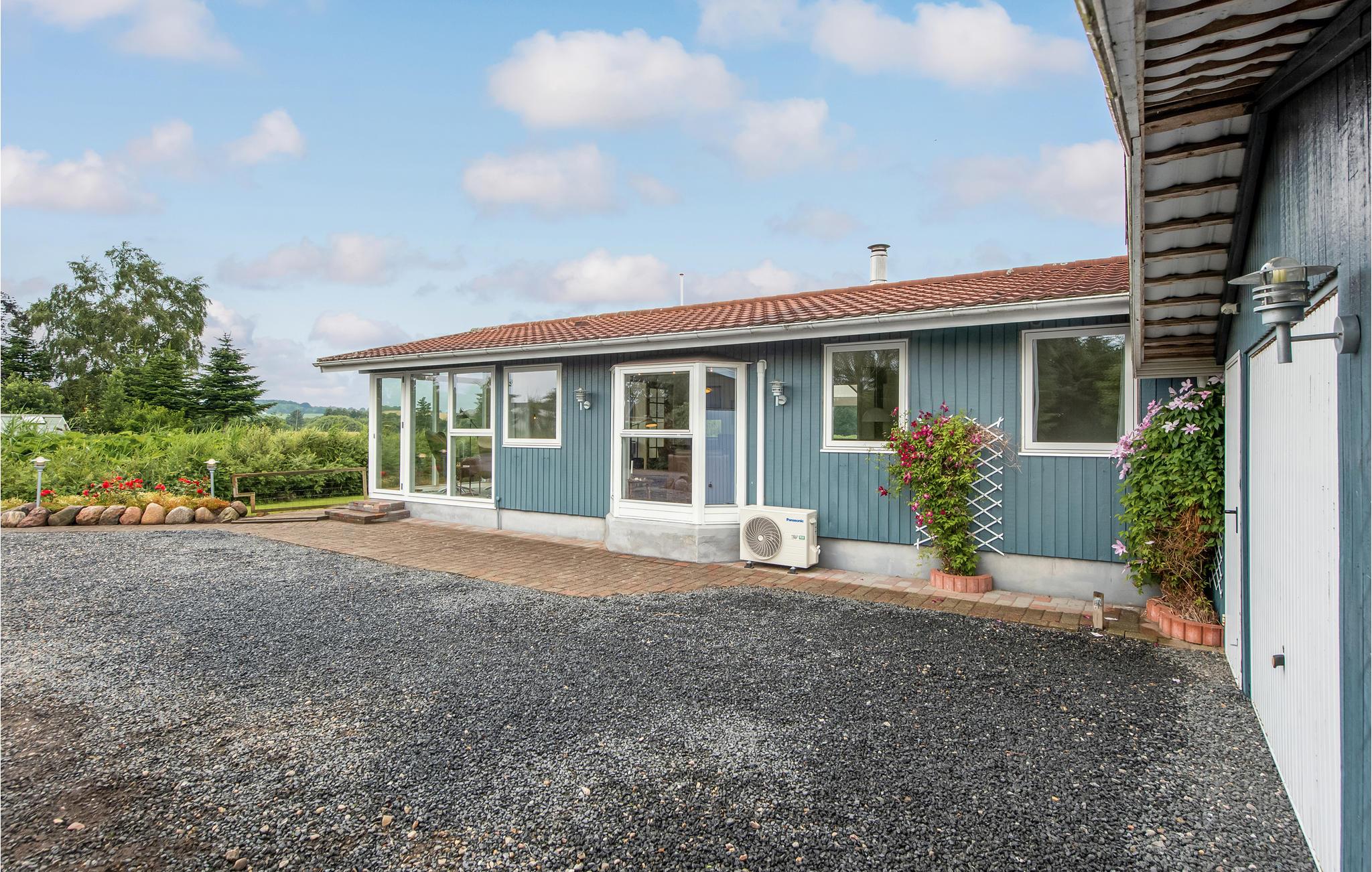 Huset er lyst og rummeligt, med terasser rundt om huset, så I altid kan finde en plads i solen. I den hyggelige, aflukkede gård kan I nyde morgensolen, og børnene kan lege i sandkassen og legehuset. På den modsatte af side af huset kan I sidde i eftermiddagssolen, mens I nyder omgivelserne og dyrelivet.