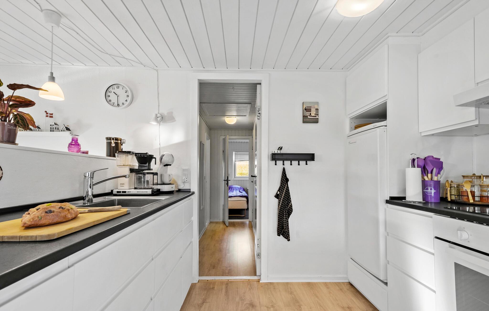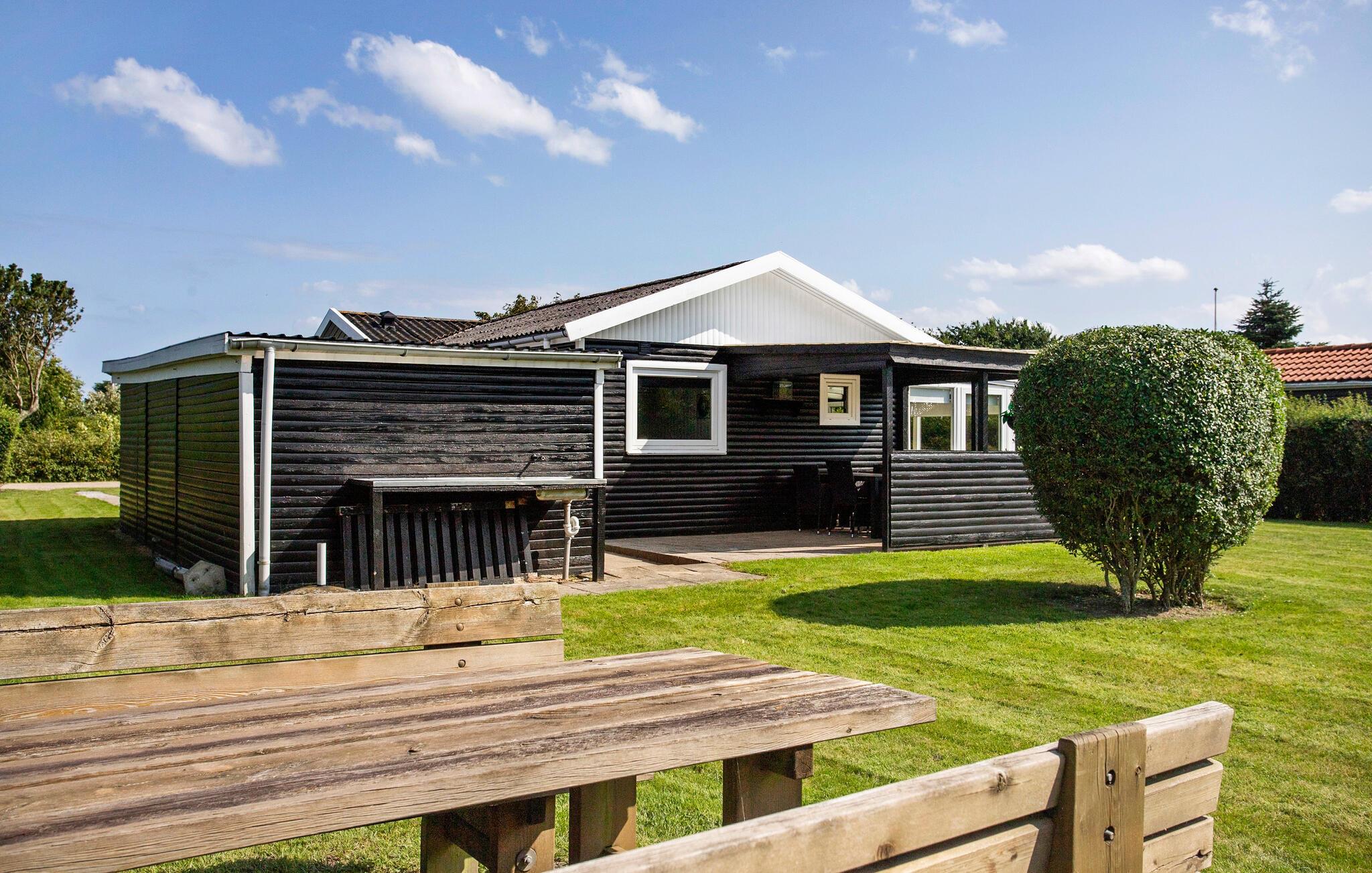 Rummeligt feriehus tæt på vand og sandstrand med moderne køkken og hyggelig udestue.