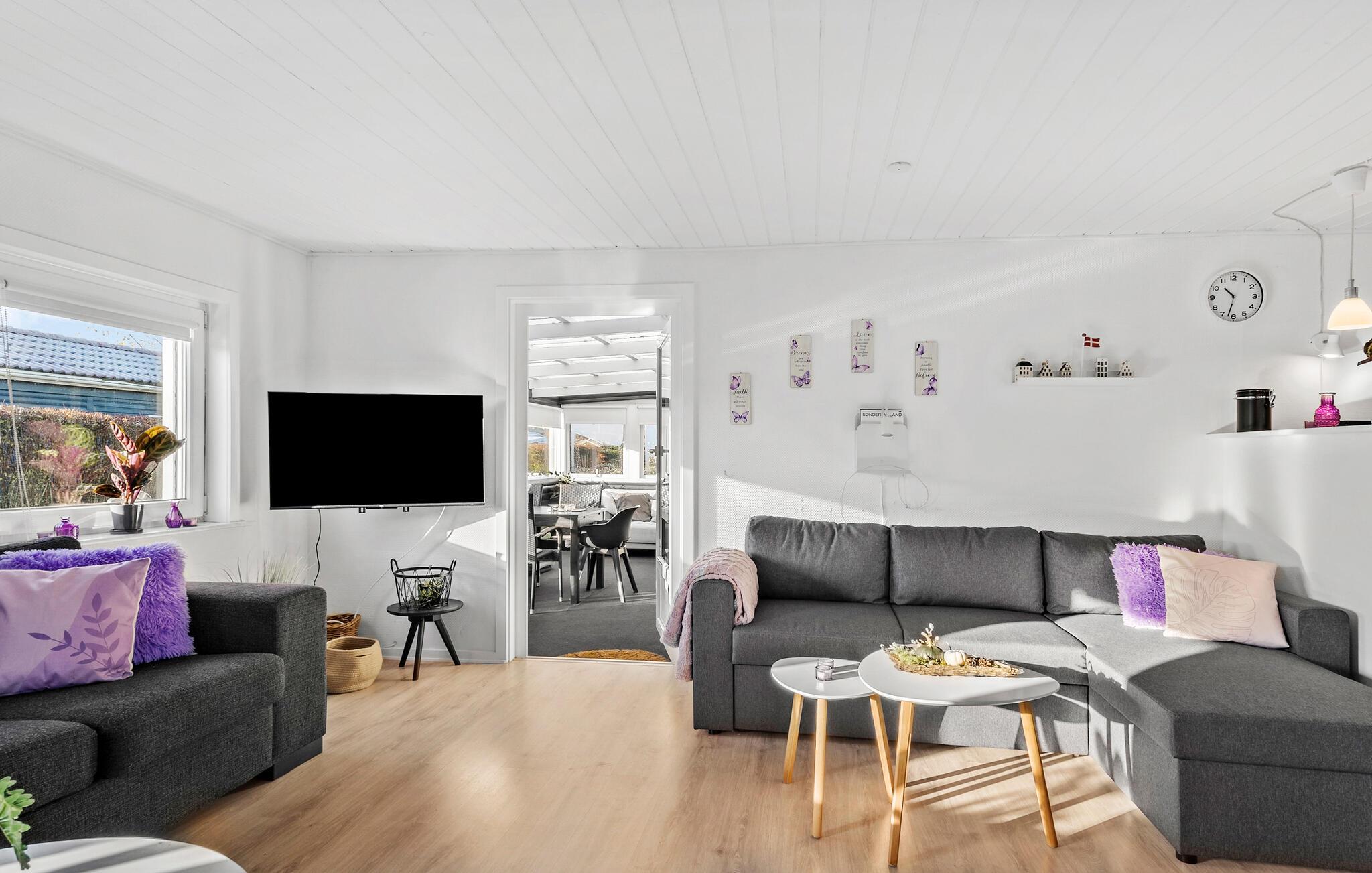 Dette dejlig sommerhus indbyder til en afslappende ferie, hvor I hurtigt glemmer alt om hverdagen. Den store og lyst indrettede stue med åbent køkken gør et smukt, moderne indtryk. Læn jer tilbage i de polstrede møbler, tilbered lækre ferieretter i køkkenet og nyd middagen sammen omkring spisebordet.