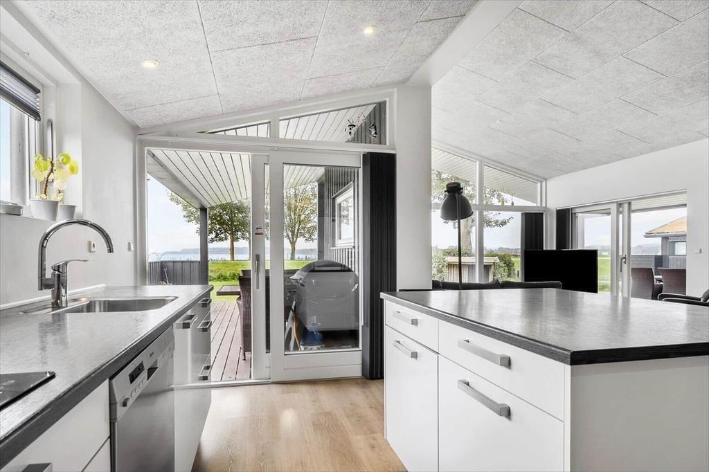 Udelivet er noget helt særligt ved dette sommerhus. Den store terrasse bliver hurtigt et yndlingssted, hvor du kan starte dagen med en kop kaffe og udsigt til vandet, mens solen langsomt stiger op over horisonten. Her kan du mærke den lette brise fra Lillebælt og høre mågernes kald, mens dagen tager form. Terrassen indbyder både til afslapning i havemøblerne, lange frokoster i det fri og hyggelige grillaftener, hvor himlen farves gylden i takt med solnedgangen. Udsigten til vandet giver en ekstra dimension til opholdet og skaber en konstant forbindelse til naturen omkring dig. Med god plads til både to- og firbenede gæster er det let at nyde ferien under åben himmel, hvad enten du foretrækker ro og fordybelse eller hyggeligt samvær.
