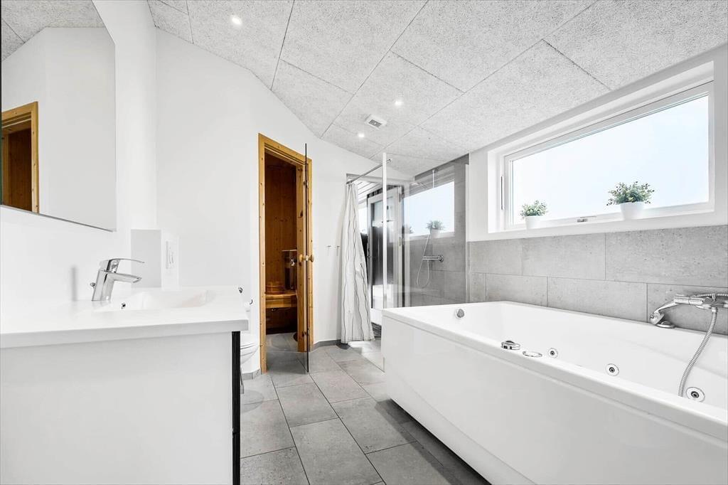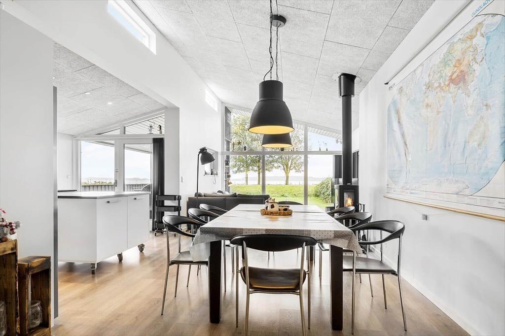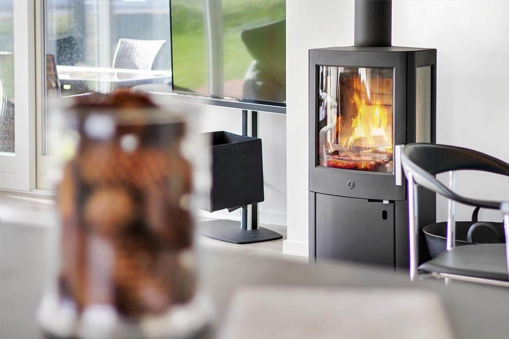 Indenfor mødes du af et lyst og hyggeligt indrettet sommerhus, hvor stemningen straks indbyder til ro og nærvær. De lyse nuancer og den indbydende indretning skaber en afslappet atmosfære, hvor du hurtigt føler dig hjemme. Stuen er husets naturlige samlingspunkt, og her kan du tænde op i brændeovnen på kølige dage og lade varmen brede sig, mens flammernes knitren danner en hyggelig baggrund for gode samtaler og stille stunder. Efter en lang gåtur langs vandet er det en sand fornøjelse at forkæle sig selv med lidt ekstra wellness i saunaen eller lade kroppen slappe helt af i spabadet. Det er her, ferien virkelig mærkes – når du kan læne dig tilbage, trække vejret dybt og nyde følelsen af velvære i rolige omgivelser med udsigt til naturen omkring dig.