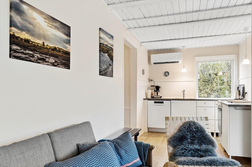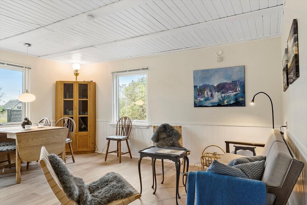 Når du træder ind i sommerhuset, bliver du straks mødt af en indbydende, lys atmosfære, der signalerer hygge. De pænt renoverede rum er indrettet med omtanke og sans for detaljen, hvilket skaber en varm og hjemlig følelse. Det åbne køkken og stueområde inviterer til samvær, hvor du kan dele måltider eller spille brætspil med familie og venner om aftenen. Med vinduer, der lukker masser af naturligt lys ind, kan du nyde udsigten til haven og mærke den gode energi, som naturen bringer indenfor. Stuerne er nemme at sidde i - perfekt til at nyde en kop varm kakao i den hyggelige stemning.