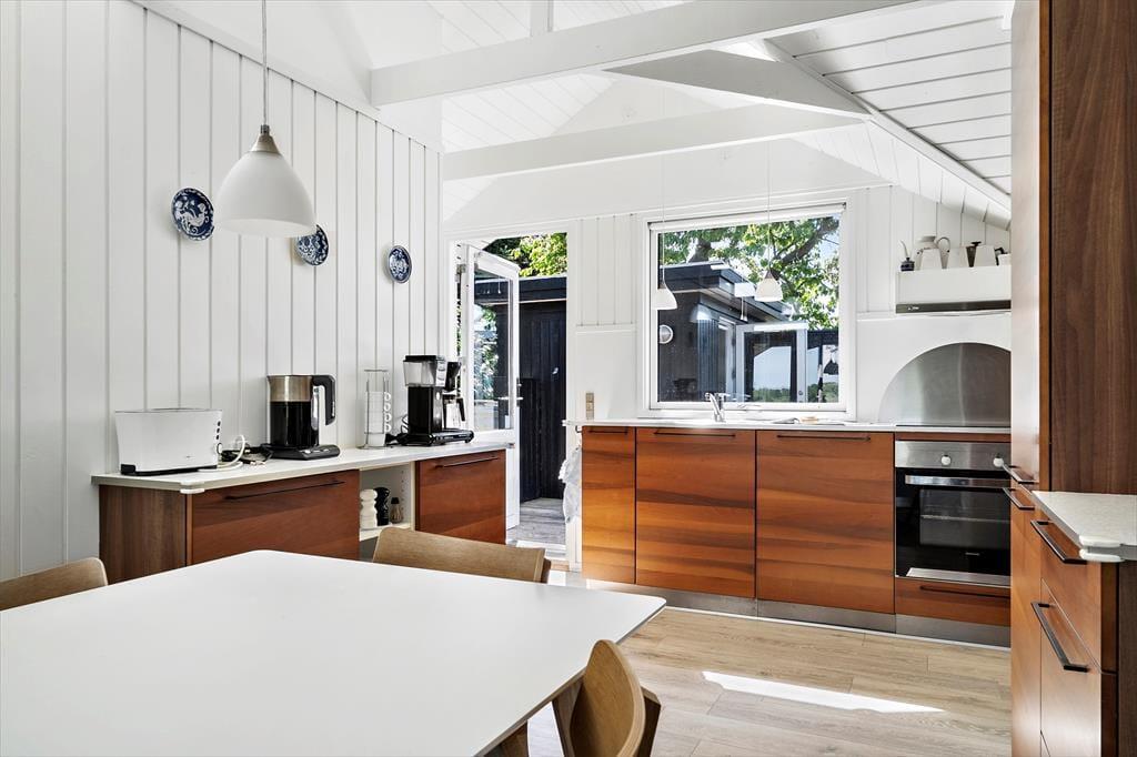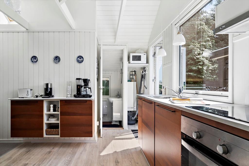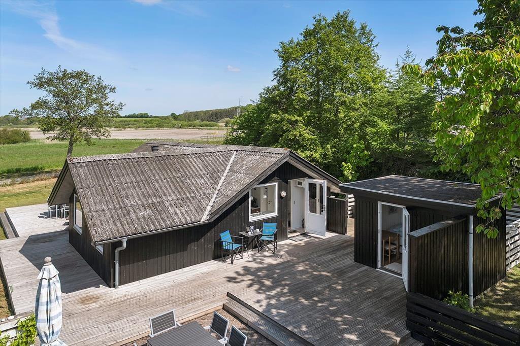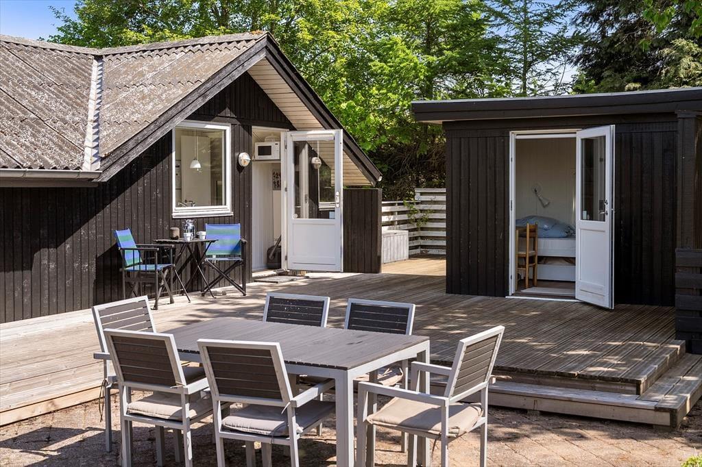 Herude leves ferielivet for alvor. Sommerhuset er omgivet af en stor grund med god plads til både leg, afslapning og fordybelse. Omkring huset løber generøse terrasser, der giver dig mulighed for at følge solen dagen igennem – start med morgenkaffe i en havestol med udsigt til trækronerne, og afslut dagen med et glas vin, mens aftensolen kaster sit gyldne skær over landskabet. Det fredelige område og de store udearealer indbyder til ro i sjælen og nærvær med dem, du holder af. Sæt dig med en god bog i læ under et træ, lyt til stilheden, og mærk, hvordan hverdagen bliver mindre og mindre for hvert minut, du er her.