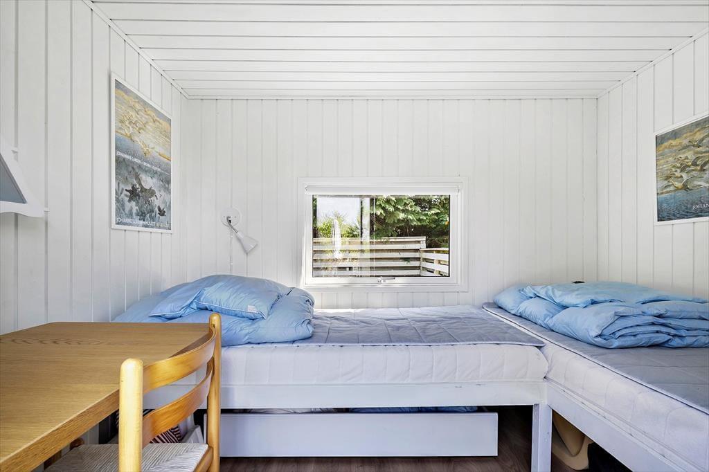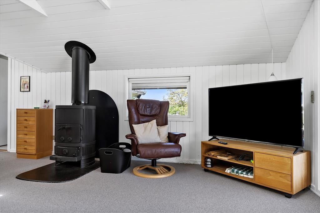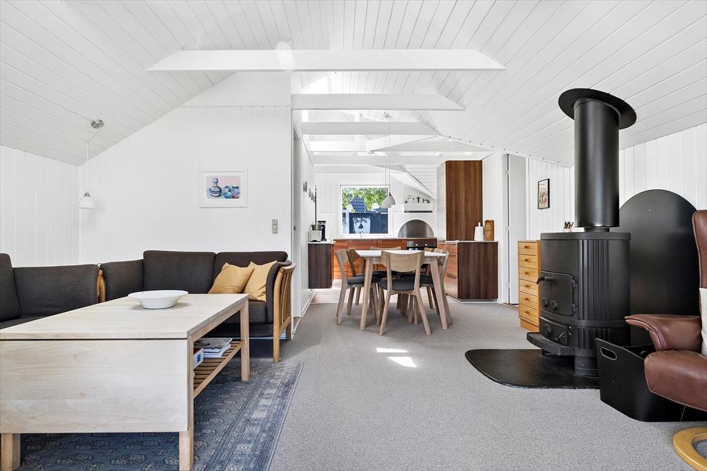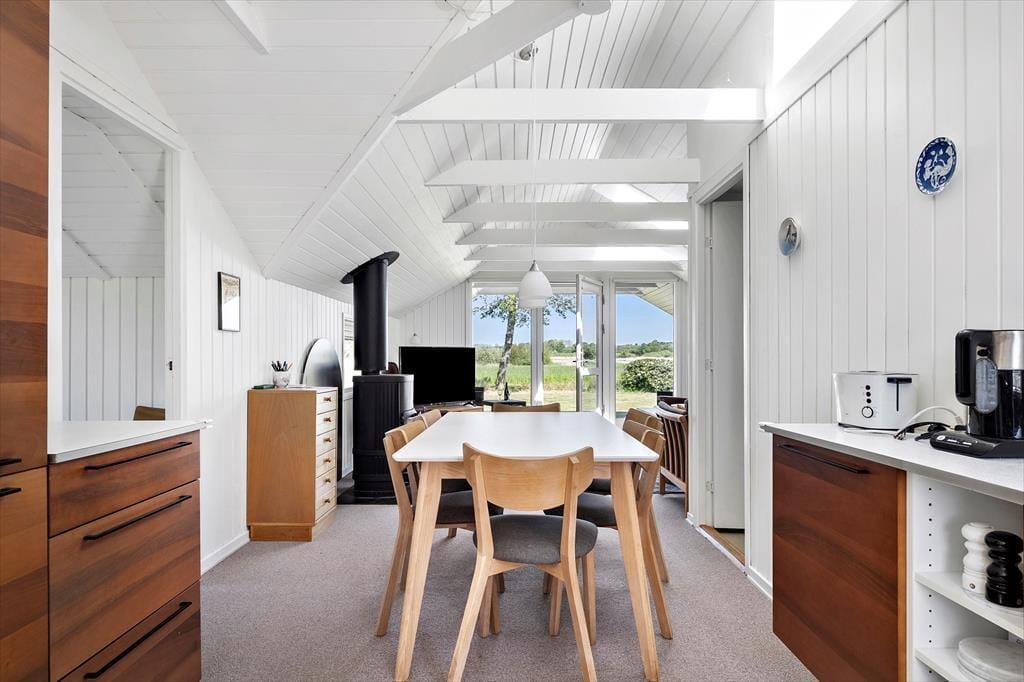 Når du træder ind i det lyse træsommerhus, mødes du af en varm og imødekommende atmosfære, der inviterer til ro og hygge. De store vinduer trækker naturen helt ind i stuen og giver dig frit udsyn til landskabets skiftende farver og det unikke dyre- og fugleliv, der udfolder sig lige uden for døren. Indretningen er enkel, men indbydende – her handler det ikke om luksus, men om nærhed og komfort. Det åbne opholdsrum skaber naturlige rammer for samvær, uanset om I samles om måltider, brætspil eller blot nyder udsigten fra sofaen. I det separate anneks finder du et fredeligt fristed med to ekstra sovepladser – perfekt til teenagebørn eller gæster, der ønsker lidt ekstra privatliv.
