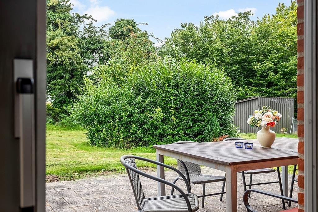 Huset byder på en dejlig terrasse med havemøbler og grill, perfekt til måltider i solen eller hyggelige aftener under åben himmel. Haven er lukket og tryg – ideel for børn, der frit kan lege, og for hunden, der kan løbe trygt rundt. Den ugenert beliggenhed ud mod marker giver samtidig en fredfyldt og naturskøn ramme om udelivet