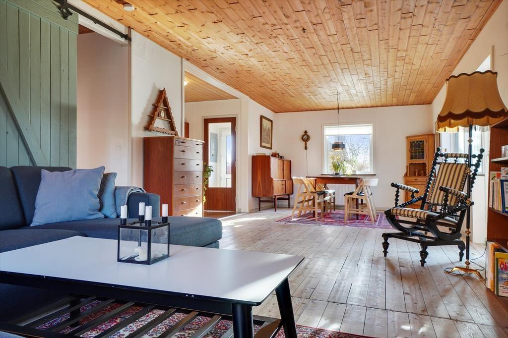 Indenfor mødes du af en lys og hyggelig indretning, der straks får skuldrene til at sænke sig. Her er en stemning af ægte sommerhusidyl, hvor ferien kan nydes i et roligt tempo med god plads til nærvær og samvær. Stuen indbyder til lange, afslappende stunder med kortspil, gode samtaler og afslapning efter en dag i den friske fjordluft, mens dagslyset strømmer ind og binder rummene sammen på behagelig vis. Køkken og opholdsrum ligger i naturlig forlængelse af hinanden, så du nemt kan være en del af fællesskabet, uanset om der laves mad eller dækkes op til hyggelige måltider. Indretningen er enkel og indbydende med fokus på komfort og feriestemning, så både store og små kan føle sig hjemme fra første øjeblik.
