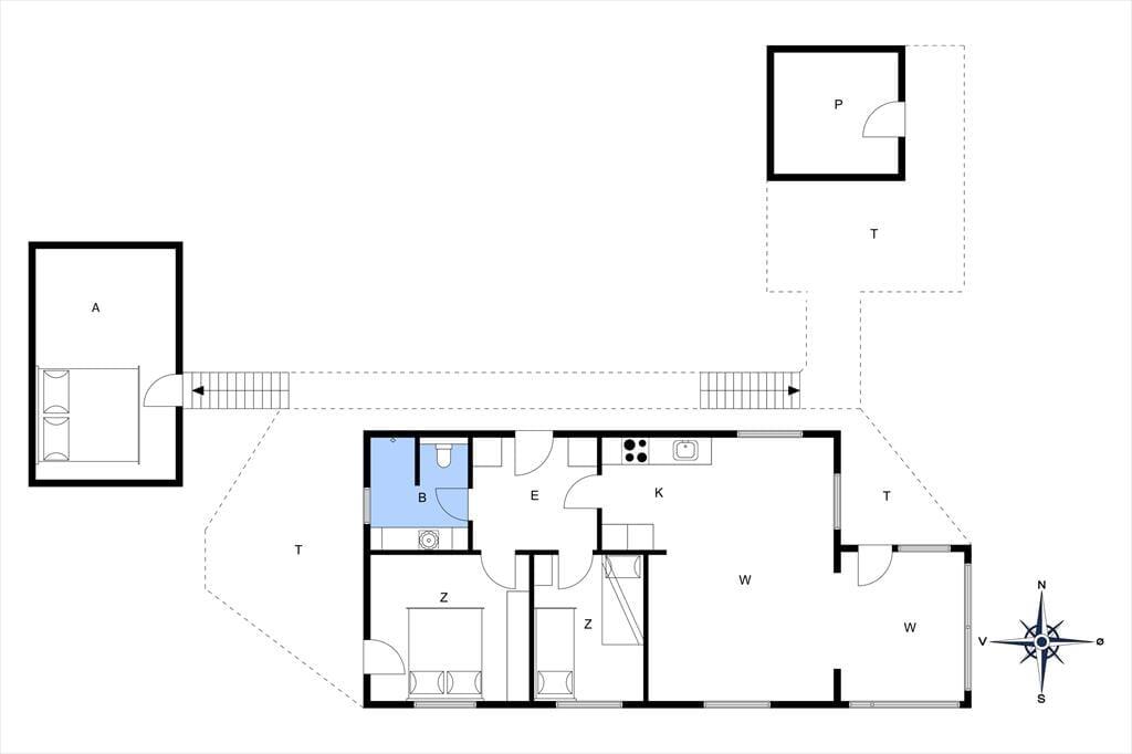 Afstande fra ferieboligen og placering på kort
