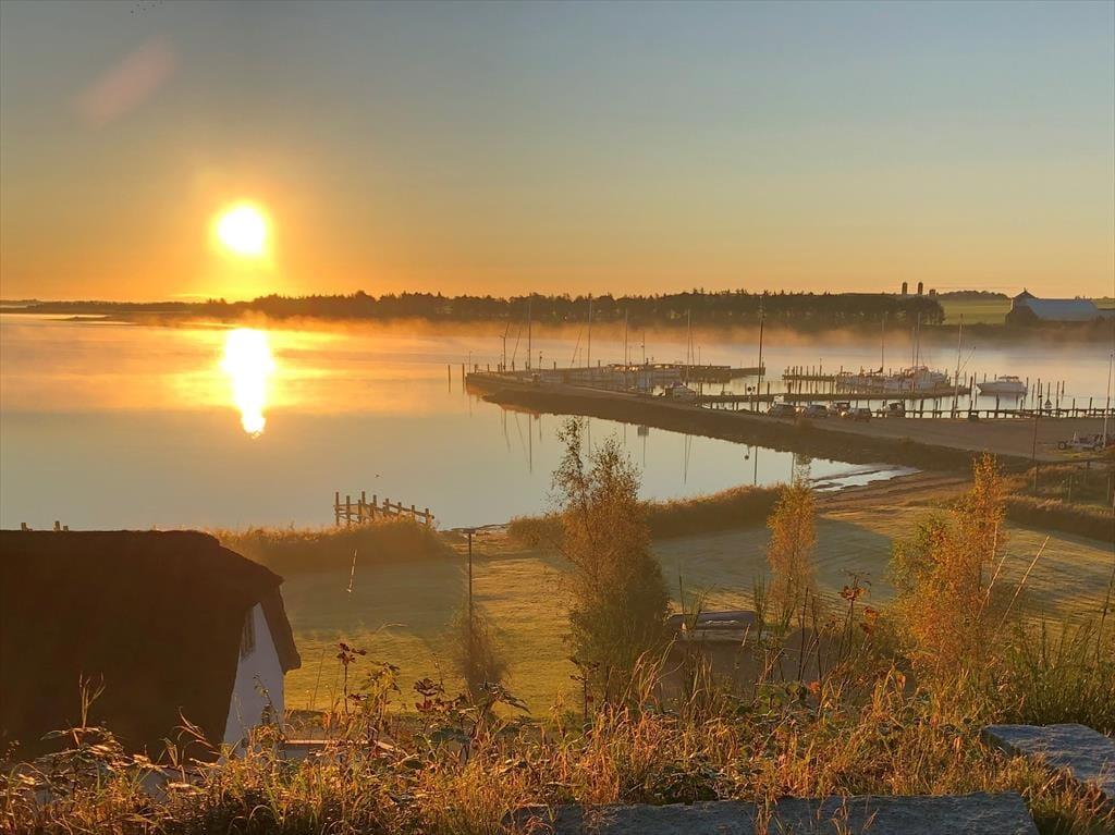 Fra den kuperede grund har I en dejlig udsigt over Doveroddes kyst og det stemningsfulde havnemiljø. Herfra er der kun få skridt ned til fjorden, hvor I kan tage en forfriskende morgendukkert eller sætte jeres kajak eller paddleboard i vandet.I hjertet af Doverodde finder I Doverodde Købmandsgård, hvor SMK Thy – Statens Museum for Kunst i Thy byder på inspirerende udstillinger, workshops og events, der bringer kunsten helt tæt på naturen og lokalsamfundet. Her mødes kultur og fjordlandskab i et unikt samspil, og både børn og voksne kan lade sig rive med af de kreative oplevelser.Omkring Købmandsgården ligger også Naturlandsbyen, hvor I kan udforske naturens materialer, gå på opdagelse i de grønne områder og mærke roen, der præger livet ved fjorden.Når det er tid til en pause, kan I slå jer ned i den nye café Centralen, hvor duften af friskbagt kage og lokale råvarer frister – alt sammen med udsigt over Limfjorden. Og har I lyst til mere, venter Oldtidshøjene, Dover Plantage, Nationalpark Thy og Vesterhavet blot en kort køretur herfra.