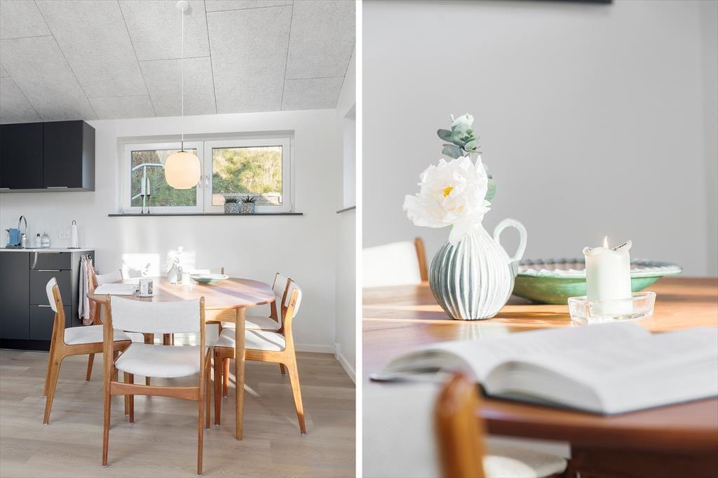 Sommerhuset, der måler 61 m2, er et oplagt valg for jer, der sætter pris på at holde ferie i komfortable og naturskønne rammer. Efter en vellykket renovering i 2020 fremstår huset lyst og indbydende, og den flotte udsigt over Limfjorden og Doverodde Marina er med til at gøre ferien helt uforglemmelig. Stuen er udstyret med store vinduer, så I kan kigge lige ud på vandet, når I drikker kaffe eller deles om et lækkert måltid – når I altså ikke slapper af med en spændende film på fladskærmen i sofaafdelingen. Det åbne køkken er veludstyret, så I har gode arbejdsforhold under madlavningen, og morgenbrusebad kommer til at foregå i pæne rammer på husets badeværelse. I de to soveværelser er der plads til fem personer, og ønsker nogen lidt mere ro, kan I trække jer tilbage til den tilhørende 25 m² store skovhytte. Her kan I nyde en stille stund, læse en bog, spille et spil eller bare slappe af midt i den fredelige natur.