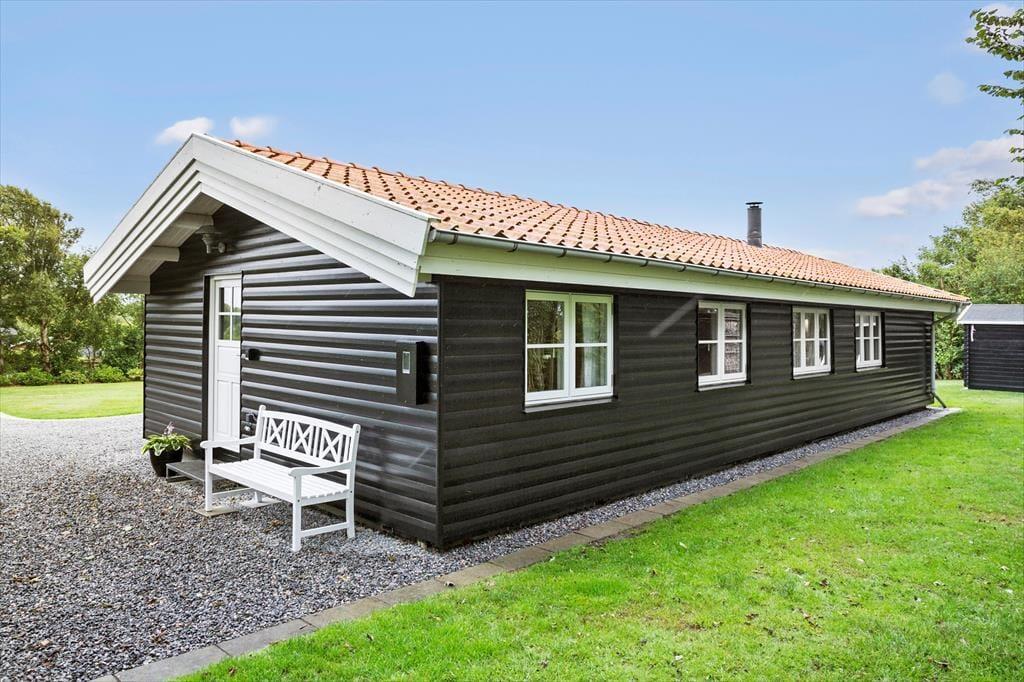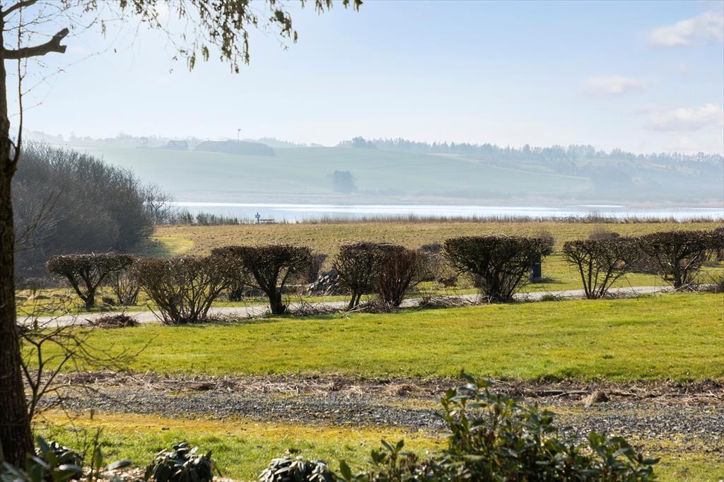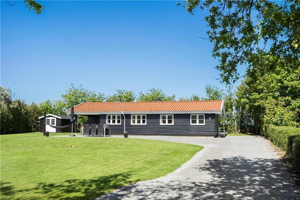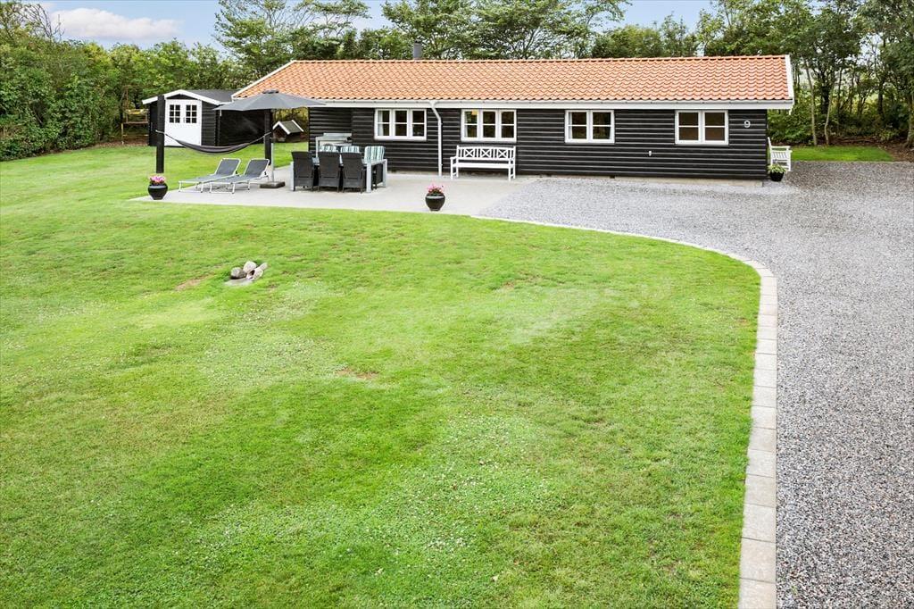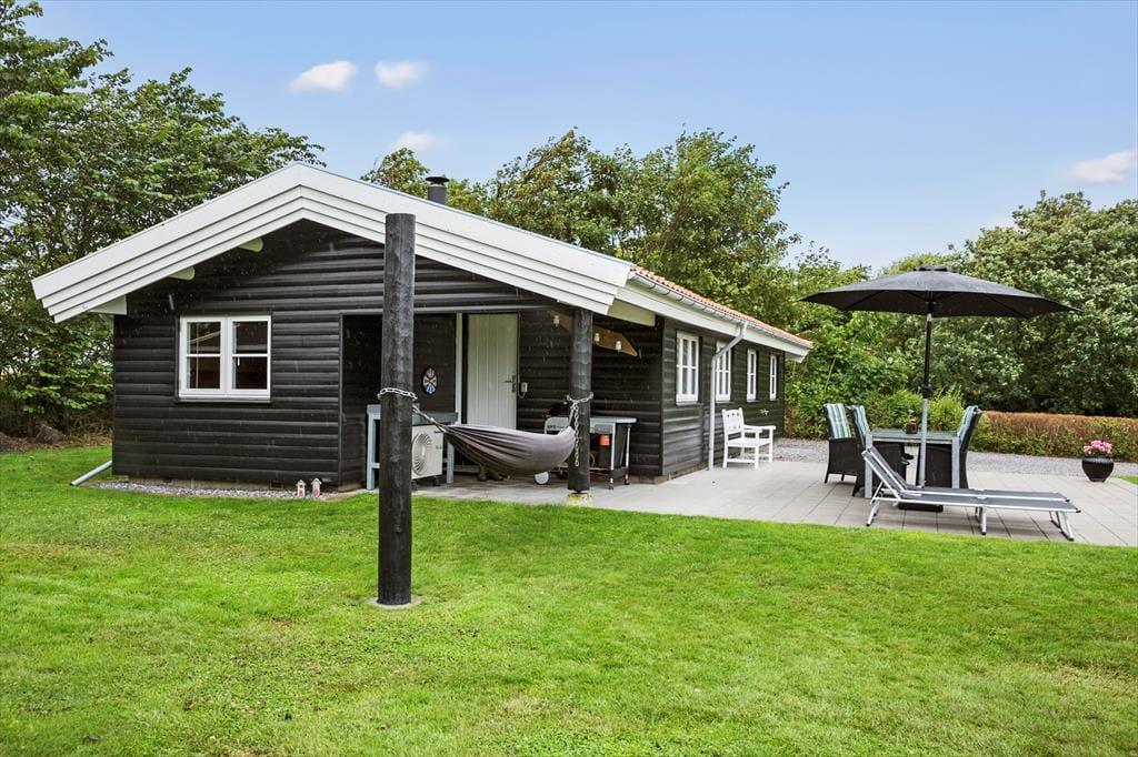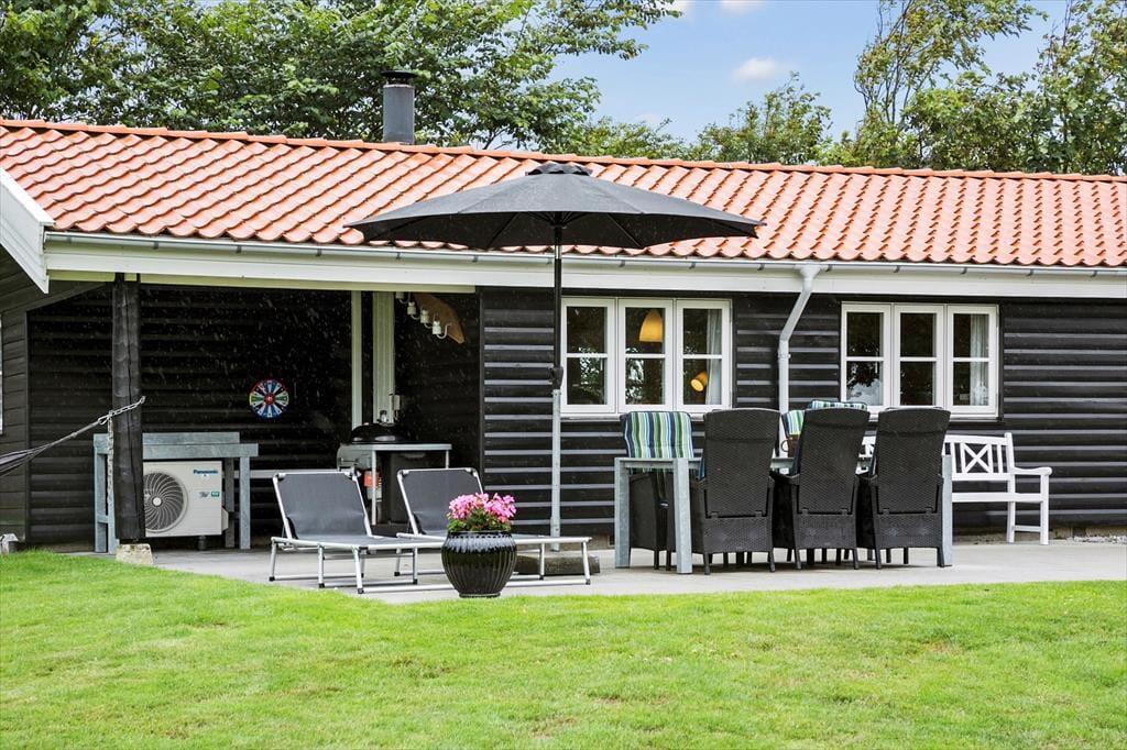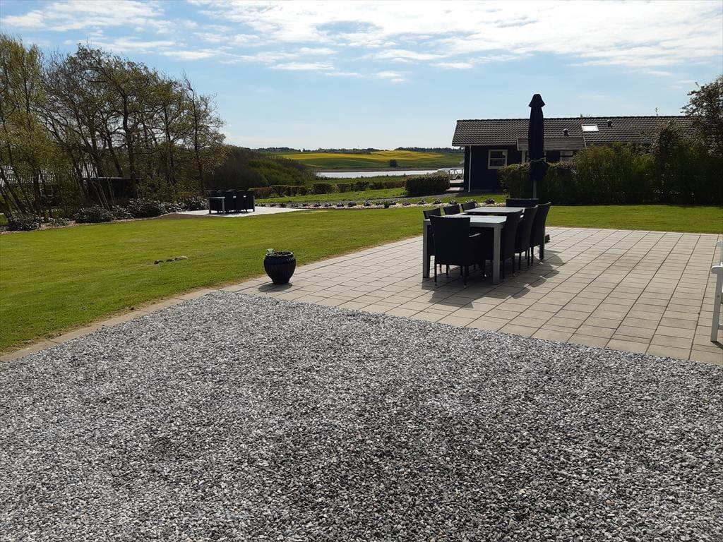 Huset har en dejlig, nyanlagt sydøstvendt terrasse, som er udstyret med diverse havemøbler, parasol og en god grill (med tilhørende gratis kul). Herfra kan I nyde en smuk udsigt over Limfjorden og de omkringliggende arealer. Fra huset er der kun en kort spadseretur ned til Limfjorden, hvor I kan bade og hygge jer på områdets fælles legeplads. Stranden er meget børnevenlig. Der er en dejlig stor græsplæne, hvor der er mulighed for leg og boldspil. Her finder I også en hængekøje. Huset ligger som det sidste på en blind vej, så I vil aldrig blive generet af trafik.