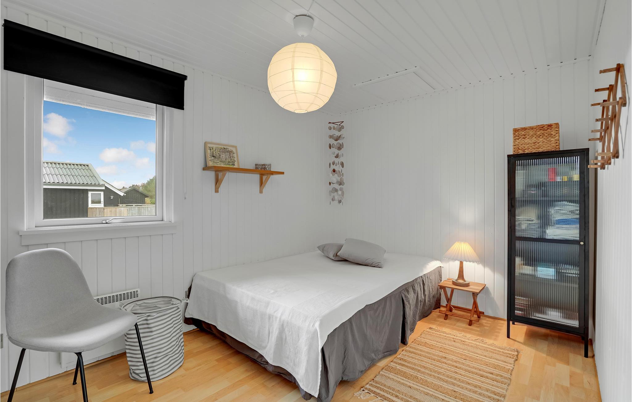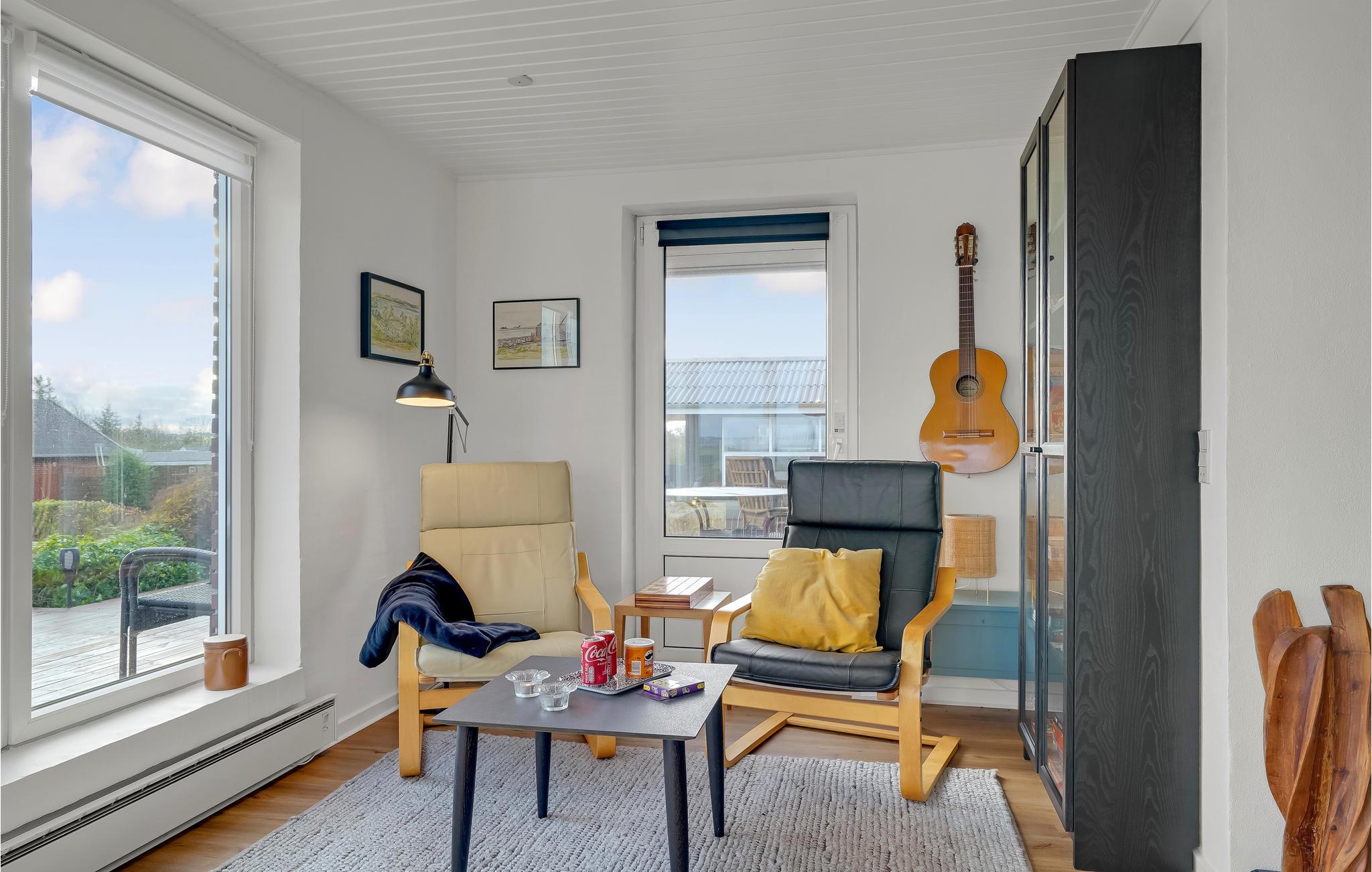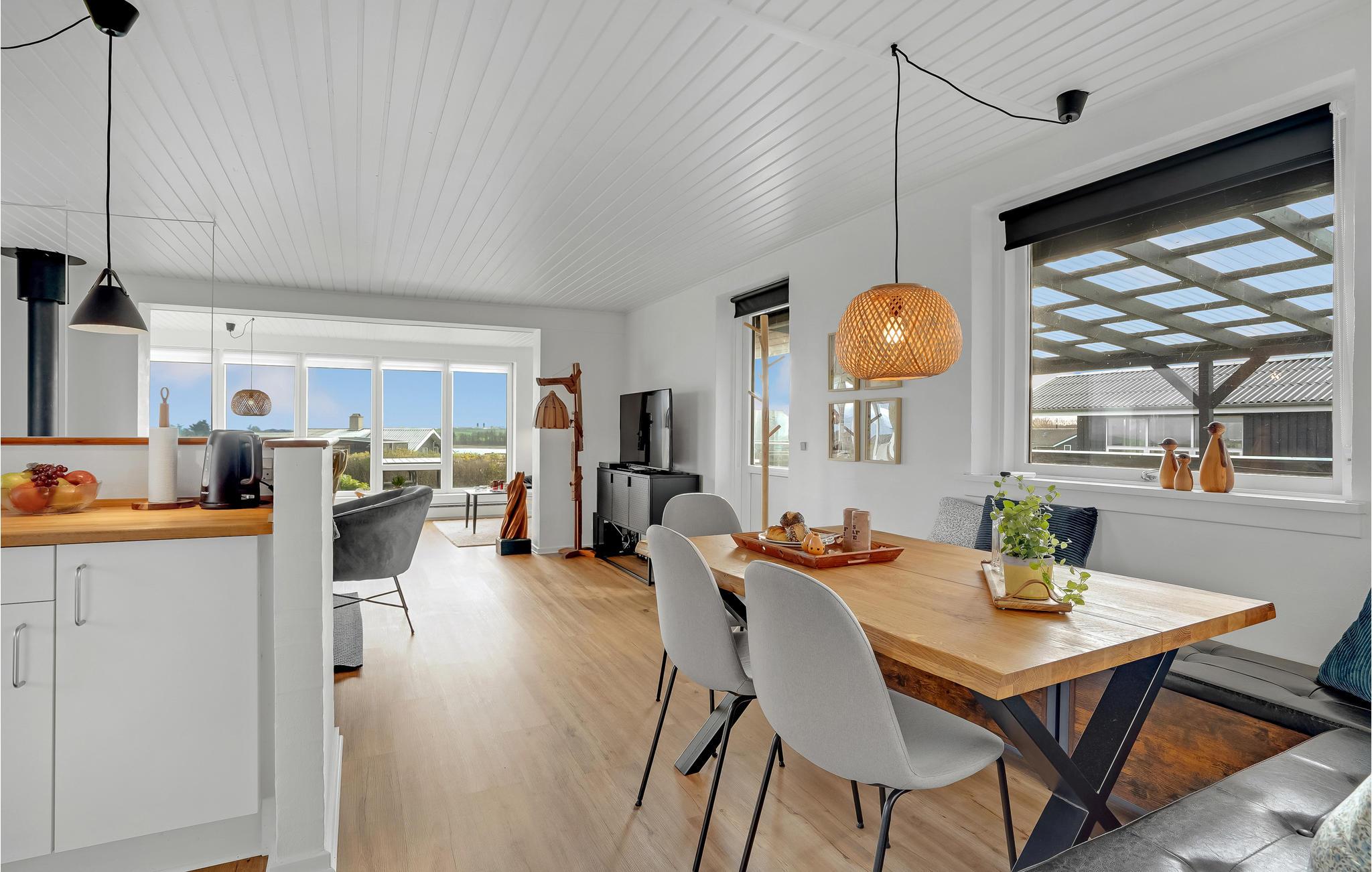 Dette attraktive feriehus ligger roligt i det naturskønne Thy-område, kun 200 meter fra vandet. Det veludstyrede hus byder på et lyst, velindrettet interiør, der skaber en personlig og smagfuld atmosfære. Nyd lækre måltider i det hyggelige spisekøkken og tilbring afslappende timer med en god bog eller hyggelige brætspilsaftener i den lyse stue. På kølige aftener kan I nyde roen i omgivelserne, mens I varmer jer med en kop te foran brændeovnen. Det store terrasseområde byder på flere hjørner og indbyder til afslappende sommerdage. Nyd udsigten over landskabet fra havemøblerne, mens børnene boltrer sig på græsplænen. Her kan I nyde livet.