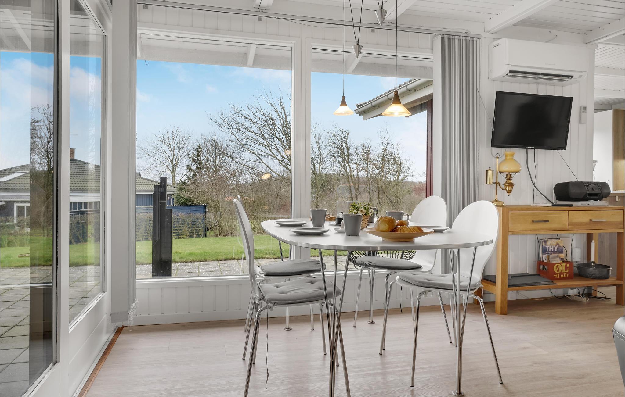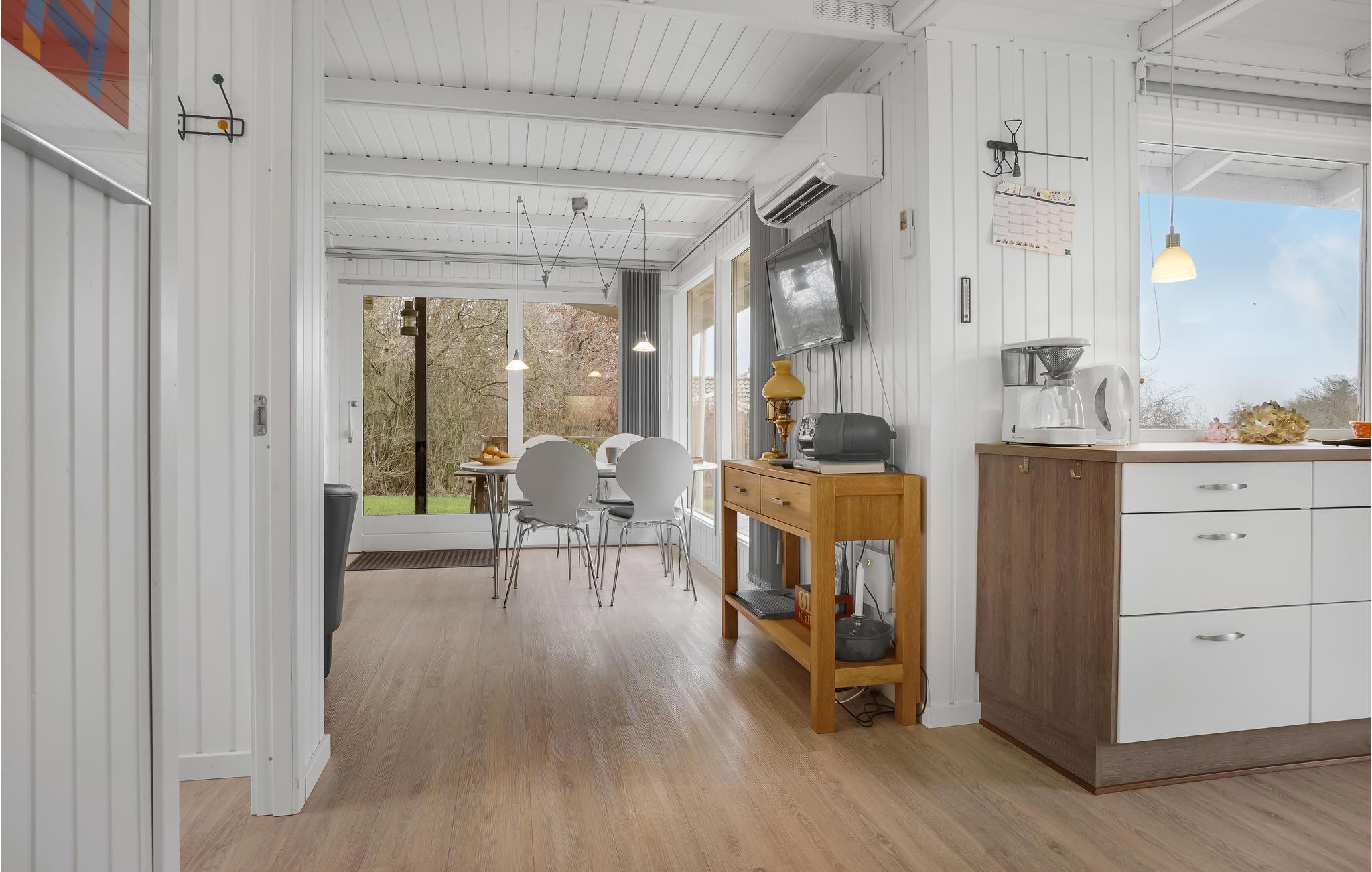 Huset byder velkommen i en skøn beliggenhed på en grund omgivet af træer i gåafstand til fjorden. De lyse værelser danner de ideelle rammer for en hyggelig ferie i en hjemlig atmosfære. Nyd måltider sammen foran gulv til loft vinduerne med en smuk udsigt til haven. Efter en begivenhedsrig dag inviterer den behagelige sofa til film- eller spilleaften, her kan I hygge jer sammen, mens flammerne knitrer i brændeovnen. Nyd solen udenfor huset, mens jeres børn render glade rundt på den store græsplæne. Afslut dagen med en lækker grillmiddag på terrassen og nyd de lange sommeraftener.