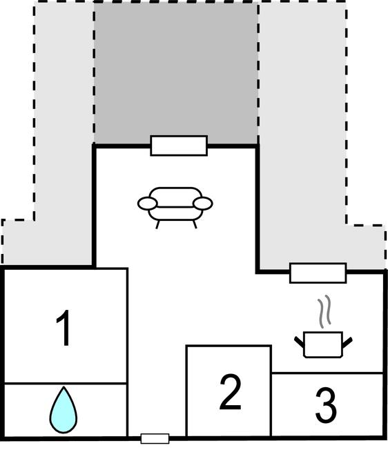 Huset består af 3 soveværelser, 1 badeværelse, en opholdsstue med sofaarrangement og TV samt et køkkenalrum med spiseplads.