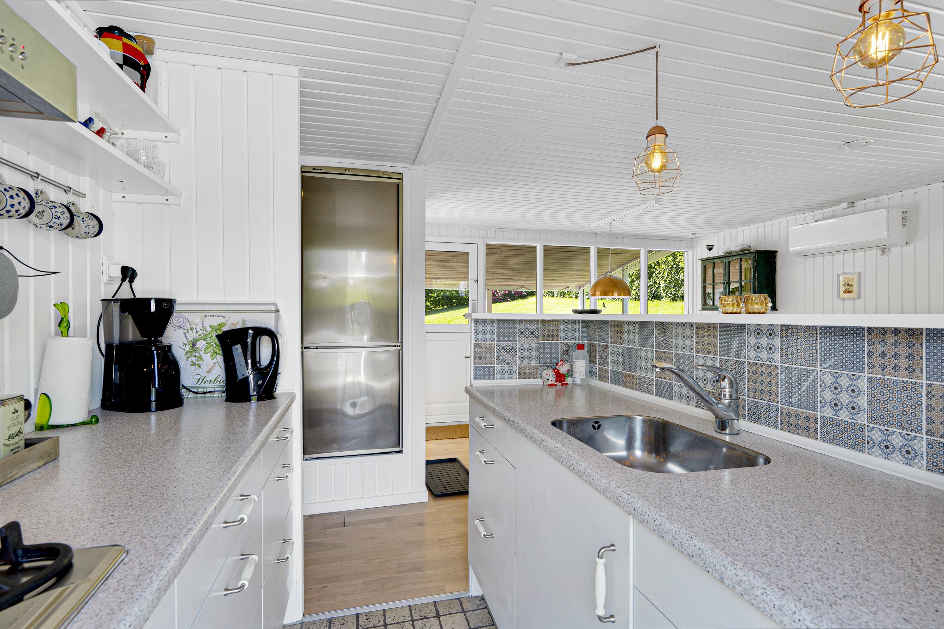 Dette lille men velindrettede og renoverede feriehus er beliggende på naturgrund et par hundrede meter fra Holme Strand. Her får I et sommerhus i traditionel stil med ægte hygge og atmosfære. Huset har en dejlig, overdækket terrasse/udestue samt stor, afskærmet fliseterrasse med gode havemøbler, liggestole, parasol, stor gasgrill og overdækket fiskerenseplads.