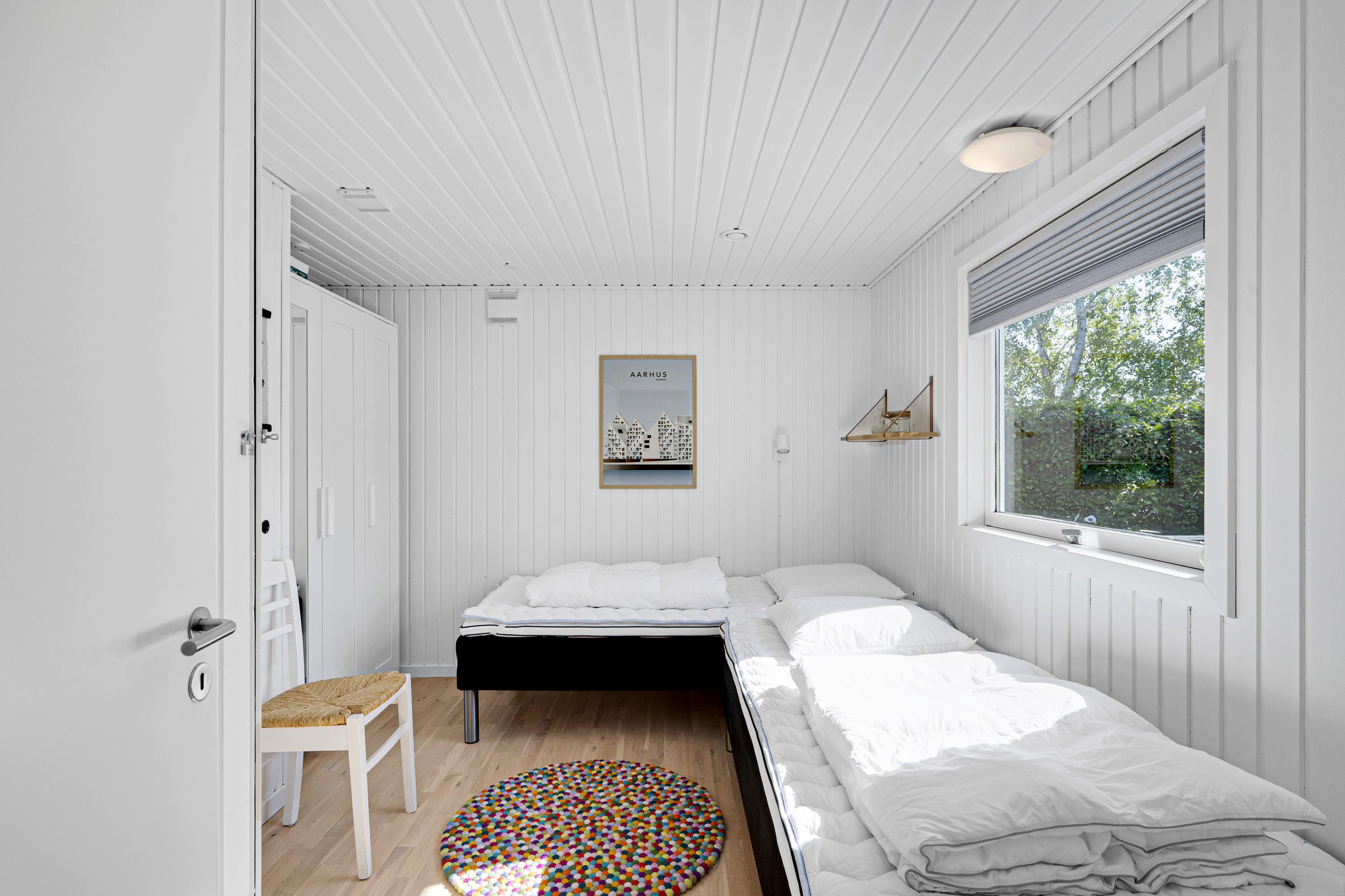 Den kombinerede stue/køkken/alrum har udgang til den overdækkede terrasse og er lyst og dejligt indrettet med spiseplads til 4 personer, mageligt sofahjørne, TV med danske (inkl. TV2) og tyske kanaler samt radio. Det nyere køkken har gaskomfur, køle-/fryseskab og kombiovn. Husets 4 sovepladser fordeler sig på 2 lyse og rummelige soveværelser: 1 med dobbeltseng og udgang til terrasse, og 1 med 2 enkeltsenge. Pænt, regulært flisebadeværelse med gulvvarme og bruseniche. Aflåseligt udhus med vaskemaskine. Der er internetadgang.