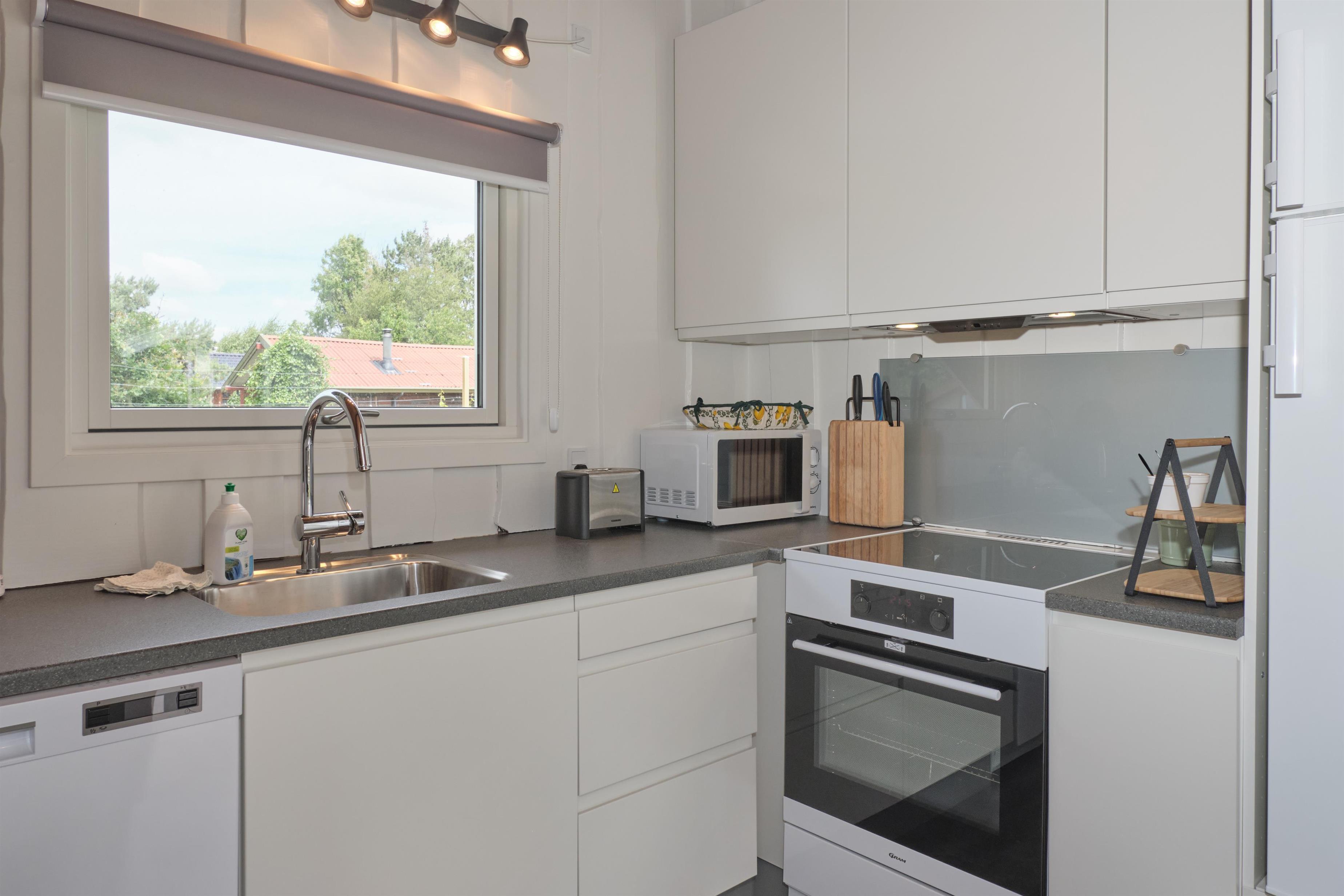 Husets hjerte er den kombinerede stue/køkken/alrum med lofter til kip. Stuen er velindrettet med god spiseplads til 4 personer, TV med danske (inkl. TV2) og tyske kanaler, samt radio. Fra det veludstyrede køkken er man i god kontakt med de øvrige af husets gæster og kan nyde udsigten til haven. Flot badeværelse med gulvvarme. Husets sovepladser fordeler sig på 2 soveværelser: 1 med 2 enkeltsenge (kan stilles sammen til dobbeltseng) og 1 med køjeseng. Internetadgang.