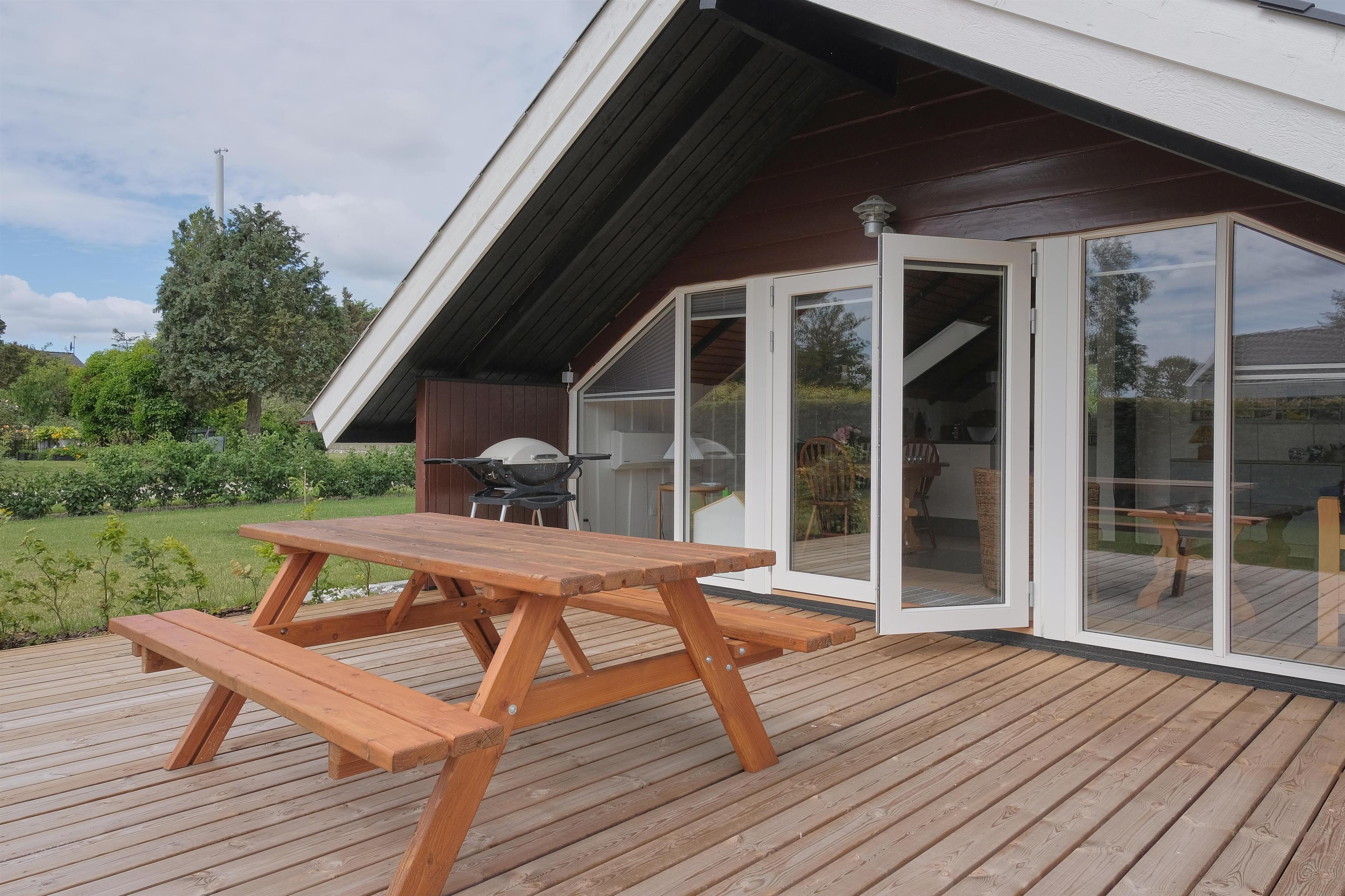 Hyggeligt nyrenoveret feriehus ved Dråby Strand med store terrasse og legeplads, kun 250 meter fra vandet.