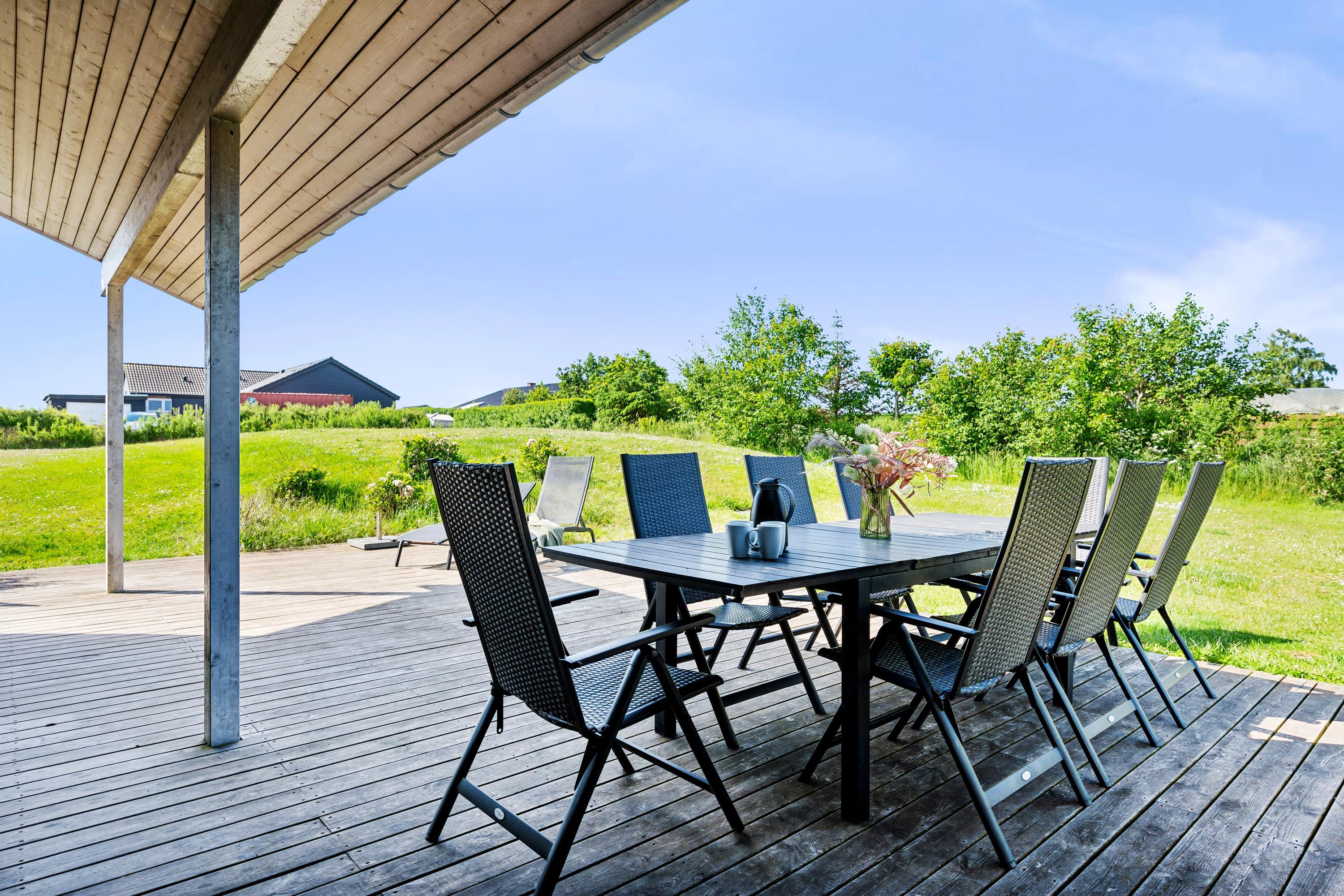 I gå afstand til Dråby Strand og med den smukkeste udsigt til Jernhatten, finder man dette rummelige og velholdte feriehus med swimmingpool. Her finder man en stor stue med udgang til en dejlig overdækket terrasse med havemøbler og grill. Flot køkkenafdeling med b.la. opvaskemaskine og en god og rummelig spiseafdeling. Husets sovepladser finder man i 4 dejlige værelser, heraf to med dobbeltsenge, et værelse med 2 køjesenge ( 4 sovepladser) og et værelse med to enkelt-senge. De sidste to sovepladser finder man på en god hems. To dejlige badeværelser med bruseniche og gulvvarme. Skønt pool- område hvor der også er et lækkert spa-bad og et separat badeværelse. Til de små feriegæster er der en høj barnestol og en barneseng. Huset er beliggende på en dejlig grund med græsplæne velegnet til leg og boldspil. Her er der også tænkt på de små feriegæster med trampolin, gynger og rutschebane.