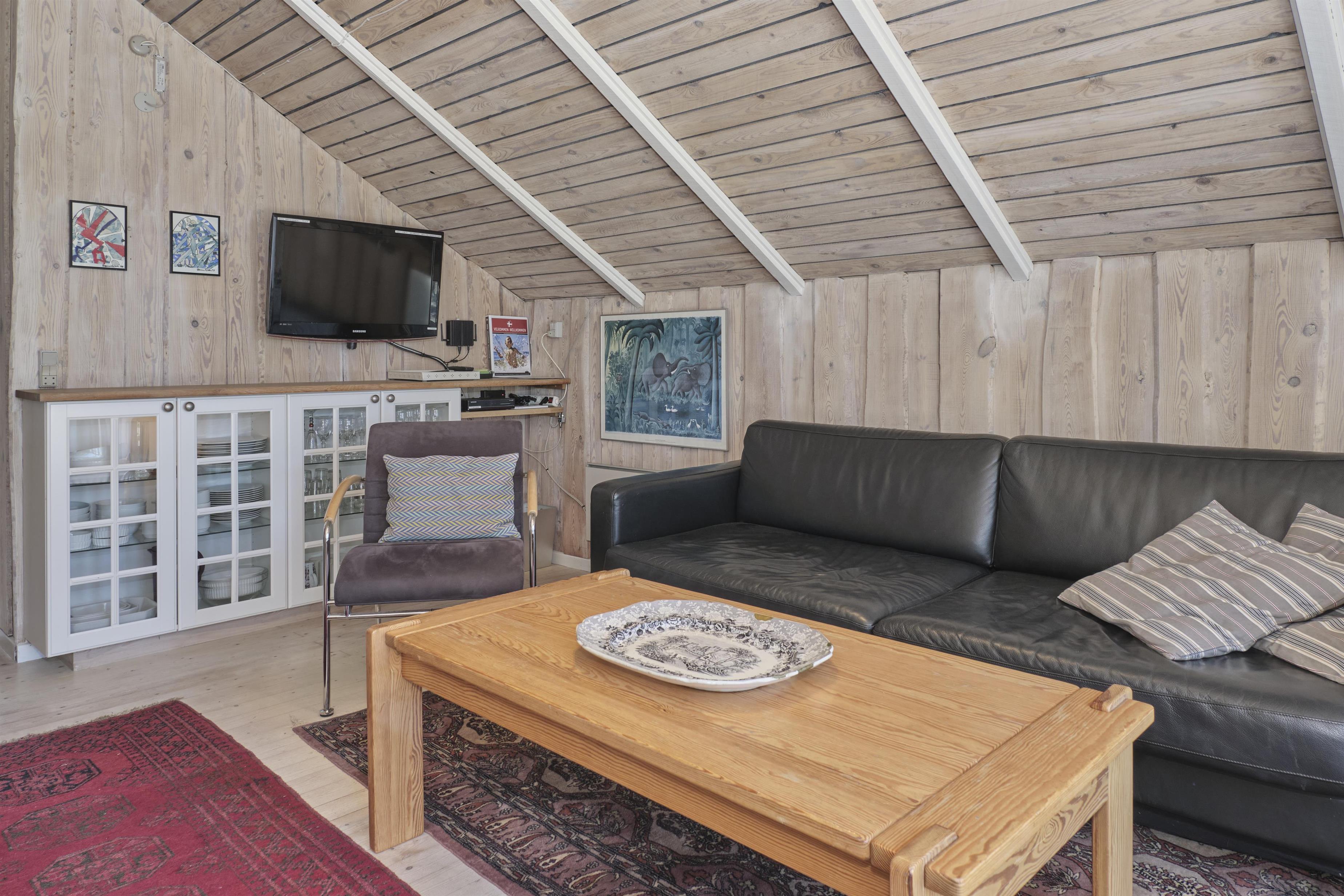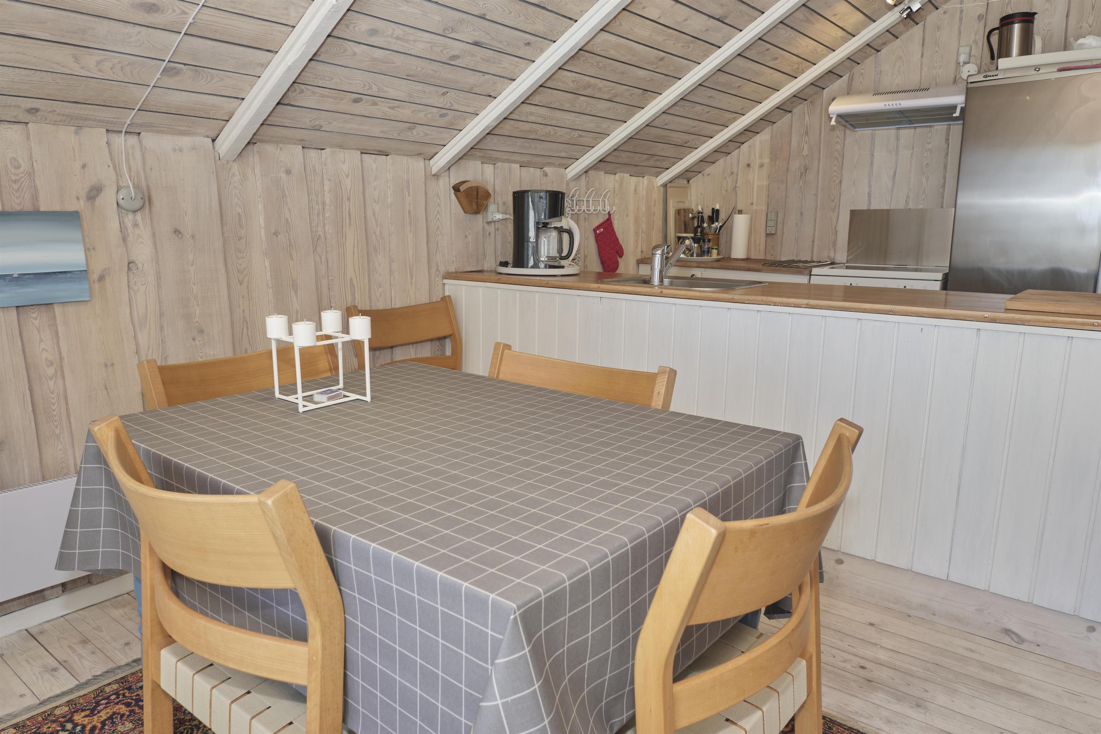 Ældre, løbende renoveret sommerhus beliggende i første række til havet med flot panoramaudsigt. Dejlig naturgrund med buske og træer samt direkte adgang til stranden. Stor træterrasse med havemøbler og gasgrill - desuden en bænk øverst på grunden, hvorfra udsigten ligeledes kan nydes. Et skønt sted uanset årstiden. Hyggelig, lys opholdsstue med TV. Hyggeligt, nyere køkken med elkomfur og køle/fryseskab og vaskemaskine. Godt badeværelse med brusekabine. Husets sovepladser fordeler sig på 2 soverum i huset: 1 med dobbeltseng og 1 lille kammer med køjeseng. Der er en sovesofa i stuen og i annekset, der er i tæt sammenhæng med huset, findes en dobbeltseng samt ekstra TV. Til de små feriegæster findes et flot legeskib med sejl.