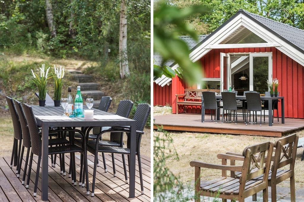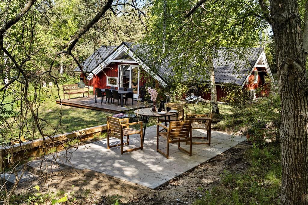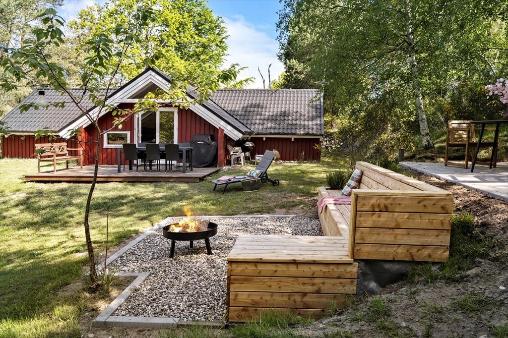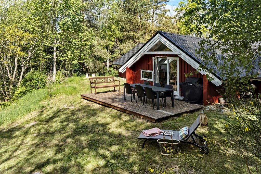 Udenfor breder ferielivet sig ud på den dejlige terrasse, hvor havemøbler og grill gør det nemt at nyde dagens måltider under åben himmel. Grunden indbyder til leg, afslapning og små stunder i solen – et sted hvor børnene kan tumle, mens de voksne læner sig tilbage med en god bog eller en kop kaffe. Her er der plads til både ro og hygge i grønne omgivelser.