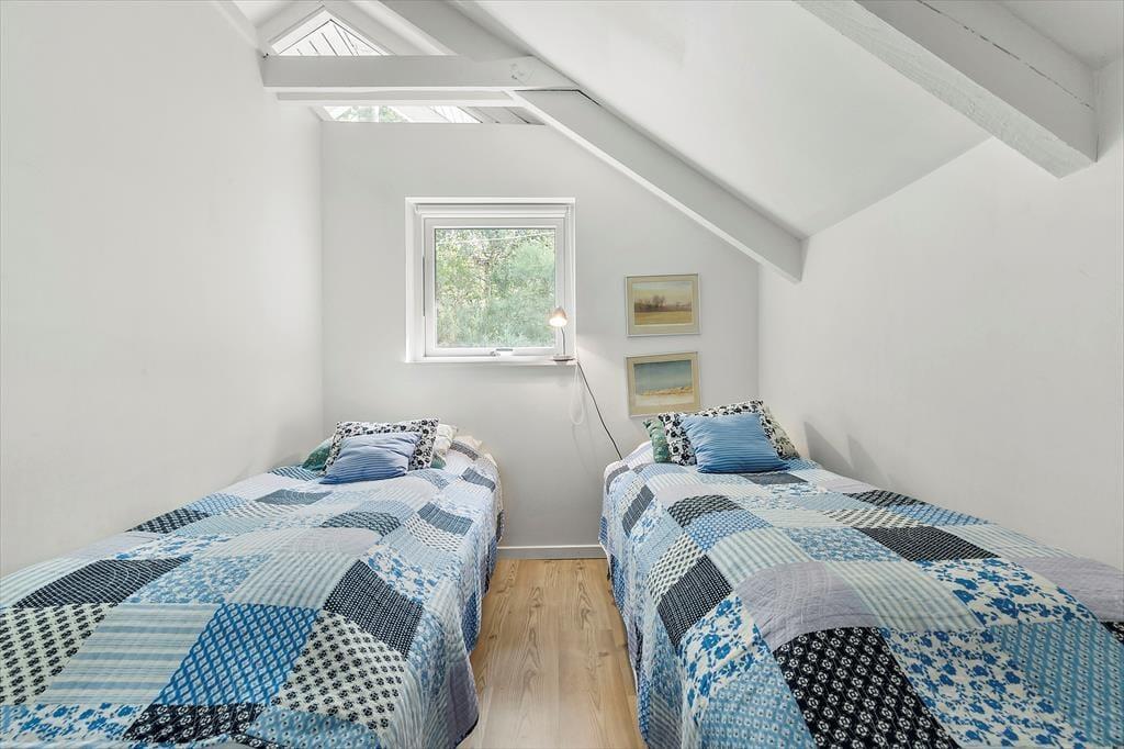 Badeværelset er pænt og funktionelt med bruseniche, og de tre soveværelser giver god plads til alle – to med enkeltsenge og et med dobbeltseng. De yngste feriegæster er også i gode hænder med både barneseng og høj stol. Og når aftenen kalder på afslapning, kan I let sætte jeres egne TV- og streamingtjenester i gang via husets Chromecast/Apple TV fra jeres egen mobil eller tablet.
