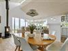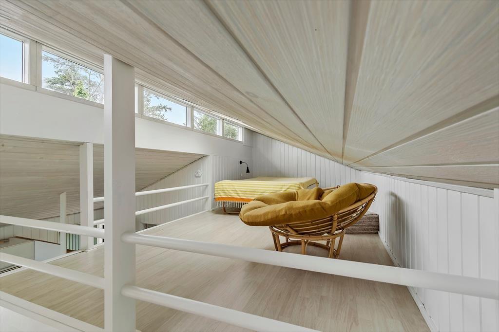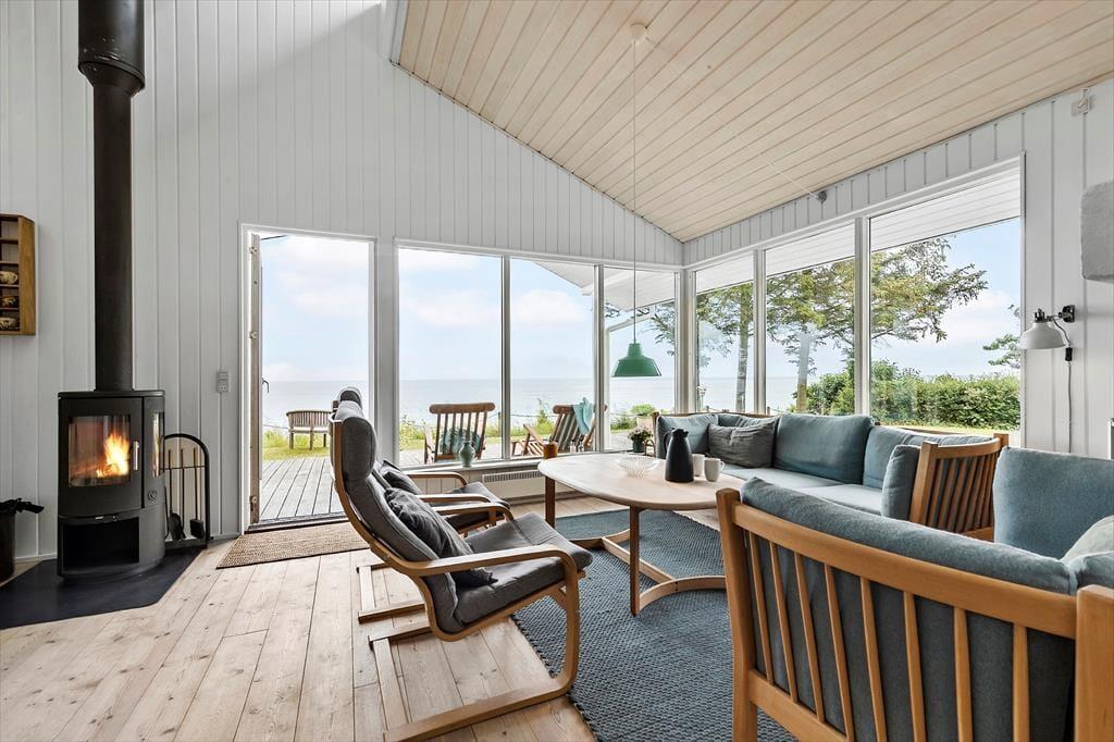 Ikke langt fra vandet finder du dette store og spændende sommerhus med panorama udsigt. Huset indeholder en lys stue, hyggeligt møbleret med b.la. spiseafdeling, stort åbent og funktionel køkken. Fra alrummet er der terrassedøre ud til den fantastiske terrasse, hvor der er hyggekrog, plads til at spise og grille. Husets sovepladser fordeler sig på 4 værelser og et badeværelse, samt sauna. Der er gratis brænde til husets brændeovn.