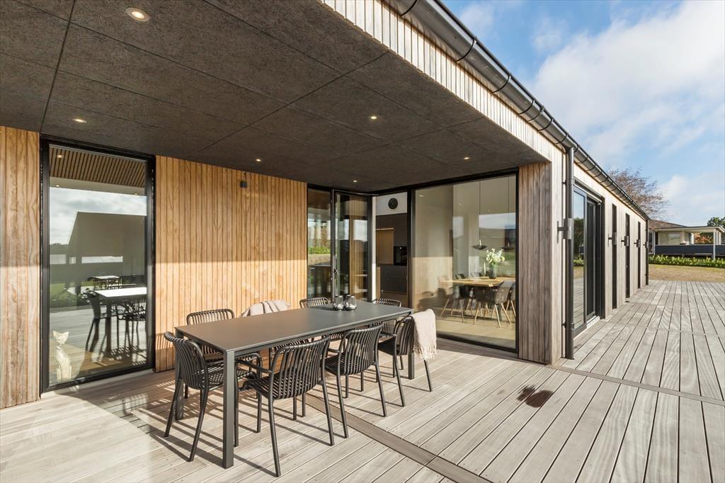 Fra huset har du kort vej til naturen og havet – kun ca. 500 meter til stranden og kysten, så du hurtigt kan mærke brisen og finde sand mellem tæerne. Udenfor venter en stor, delvist overdækket terrasse, hvor du både kan nyde solen og finde ly på de lidt køligere dage. Start dagen med morgenkaffen under overdækningen og slut den af med grill og hygge i det fri – uanset vejret.
