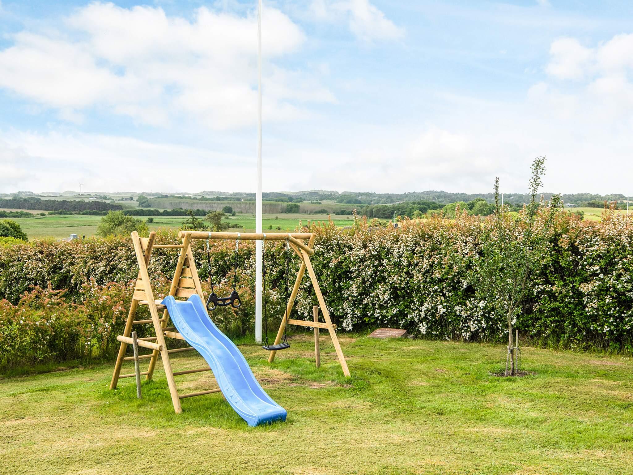 Udendørs fortsætter oplevelsen med flere skønne terrasser, hvor man kan følge solen fra morgen til aften – perfekt til både morgenkaffen, frokosten i skyggen og aftenens grillmiddag. Den store have giver masser af muligheder for både afslapning og leg, og familiens yngste vil elske legeområdet med gynger og rutsjebane. Der er naturligvis også tænkt på detaljerne, med både flagstang og flag samt en el-ladestander til elbilen.