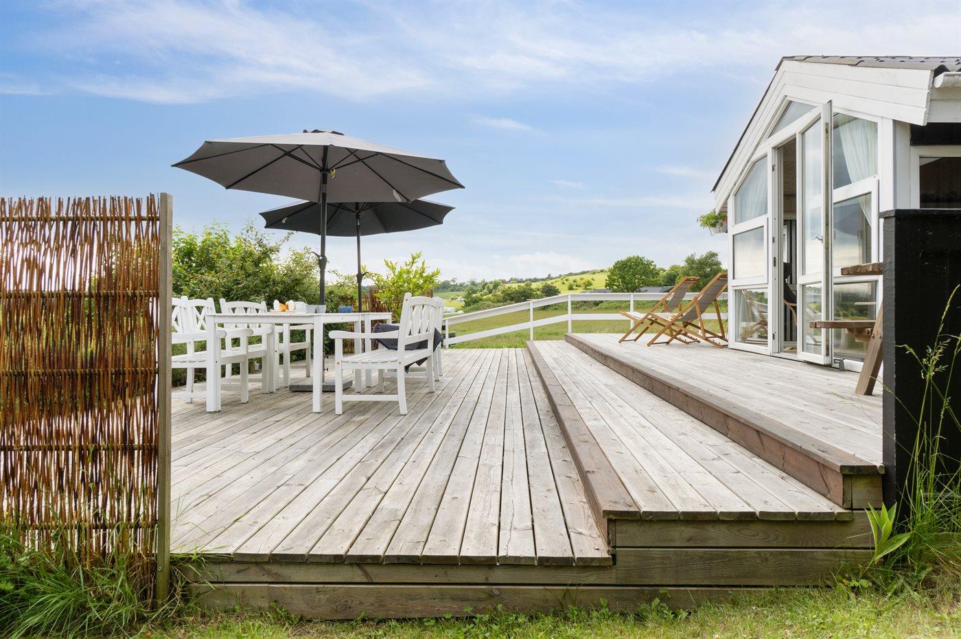 Dette dejlige og velholdte sommerhus med stor og indbydende swimmingpool ligger i fredelige og naturskønne omgivelser ved Dråby tæt på Ebeltoft. Sommerhuset fremstår lyst og moderne og med en rigtig god planløsning, hvorfor det er oplagt til f.eks. to familier eller blot en familie med bedsteforældre - mulighederne er mange i dette velbeliggende sommerhus. Der er også mulighed for at medbringe op til to husdyr.
