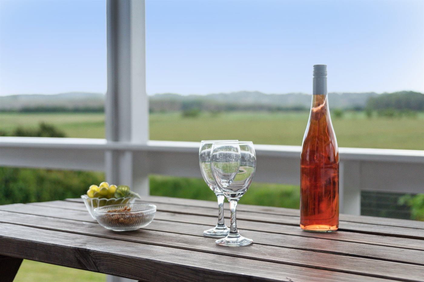 Ved huset er der skønne terrasser, hvorfra solen og de smukke omgivelser i høj grad kan nydes. Sommerhuset har en fantastisk swimmingpool, og der er desuden også både spa og sauna. Udenfor er der legefaciliteter til mindre børn på den store og børnevenlige græsplæne med godt plads til at boltre sig på.