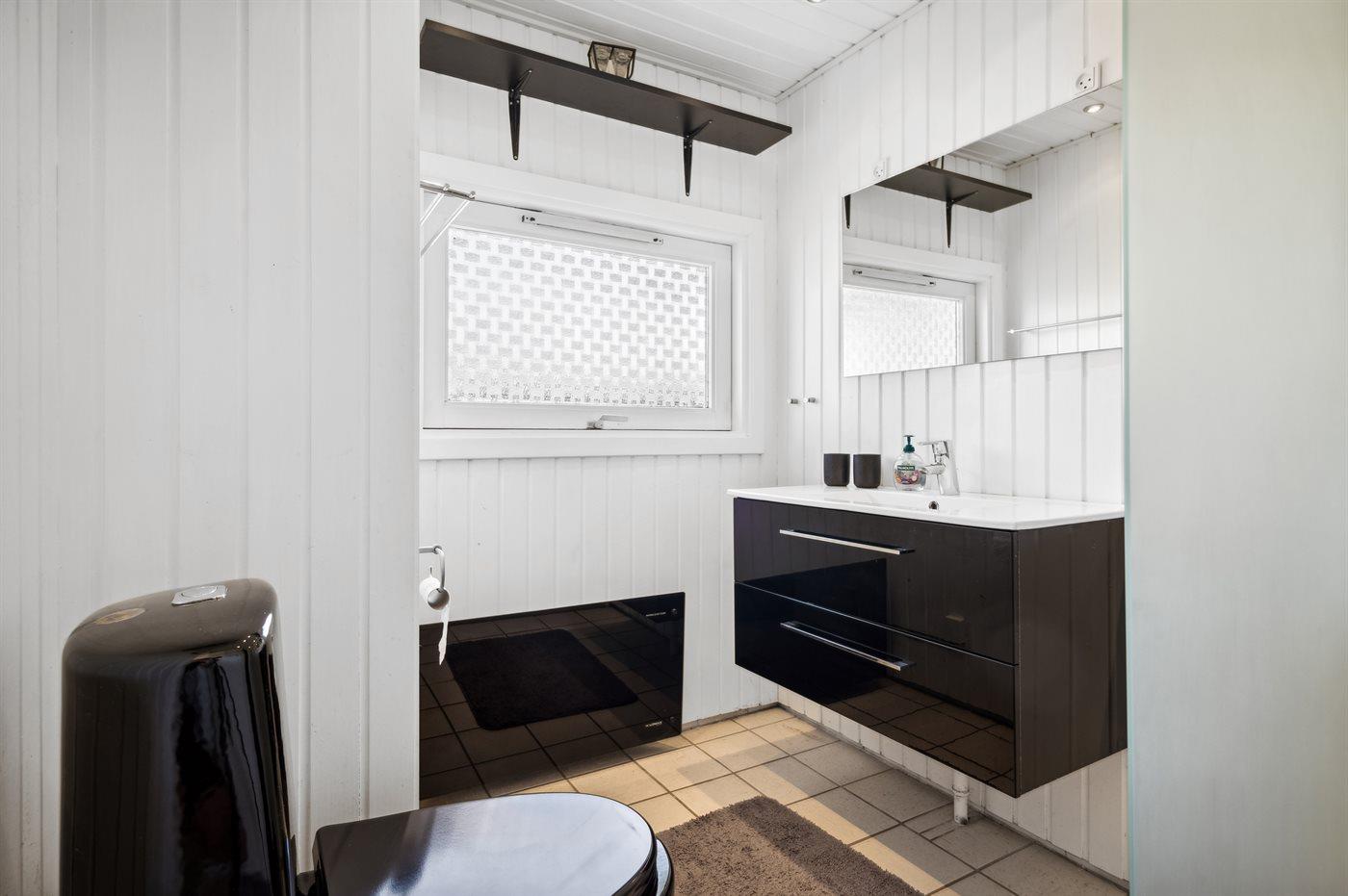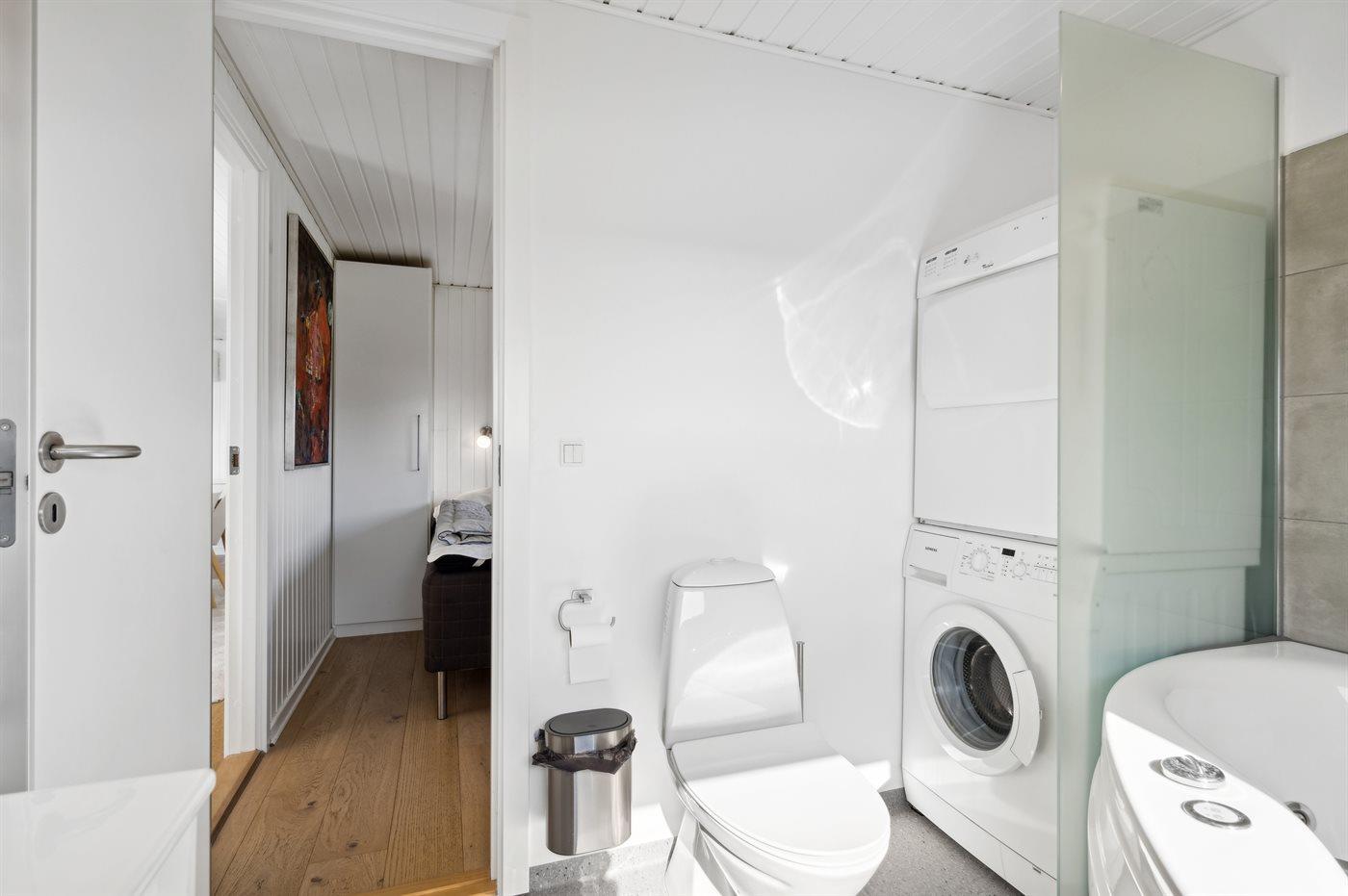 Der er 2 badeværelser med bruseniche og 2 toiletter. Der er gulvvarme på 1 badeværelse.