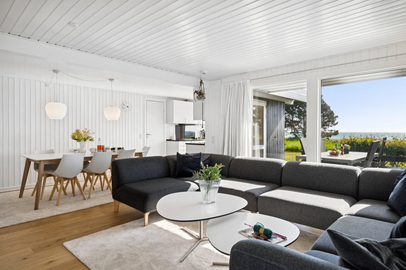 Lækkert sommerhus i første række med havudsigt, spa og moderne faciliteter ved Dråby Strand.