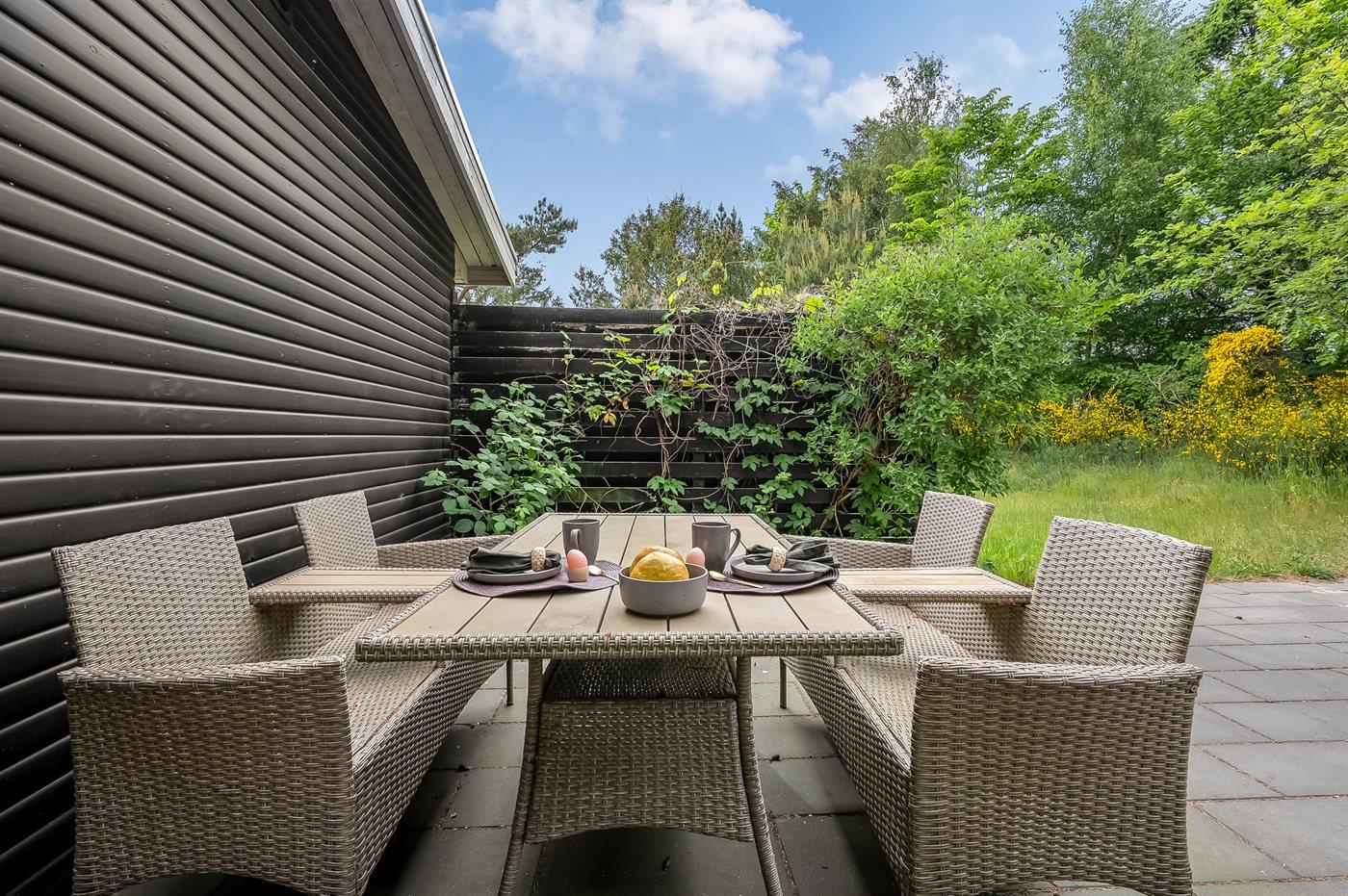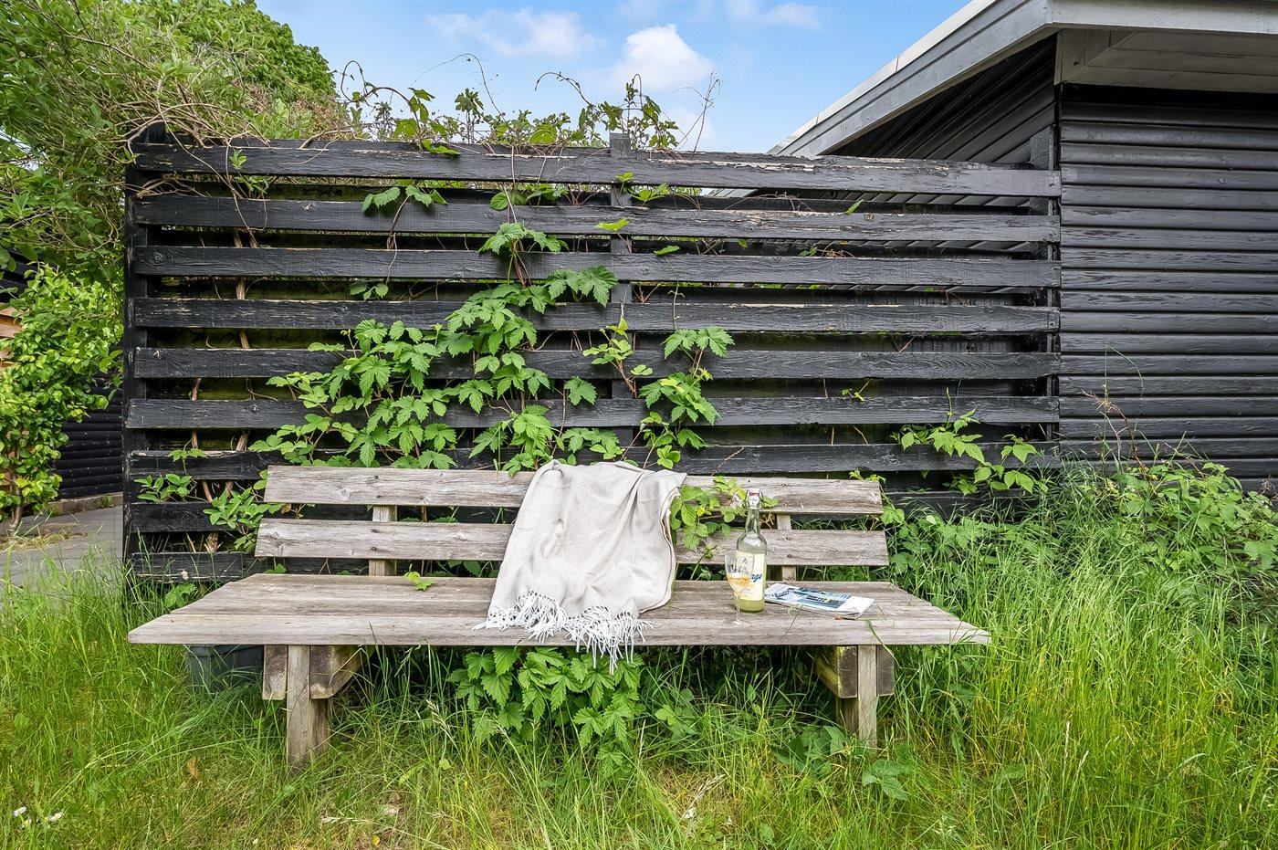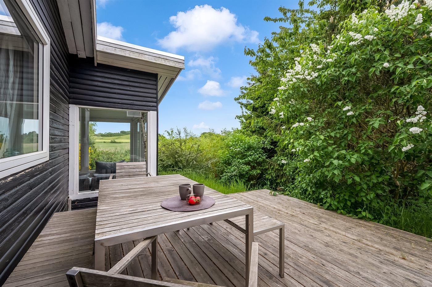 Huset råder over en smuk og veldisponeret naturgrund med flere gode kroge samt legehjørner til de yngste feriegæster. Nyd dagens første kop kaffe på den afskærmede terrasse i skyggen af figentræet, hvor I også kan nyde gode måltider på de lune sommeraftener, og rund dagen af med udsigt over markerne, mens solen sænker sig.