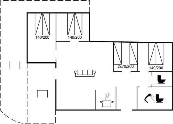 Der er i alt 4 soveværelser. Sovepladserne fordeler sig på: 6 sovepladser i dobbeltsenge. 2 sovepladser i enkeltsenge. Derudover er der 1 stk. barneseng.