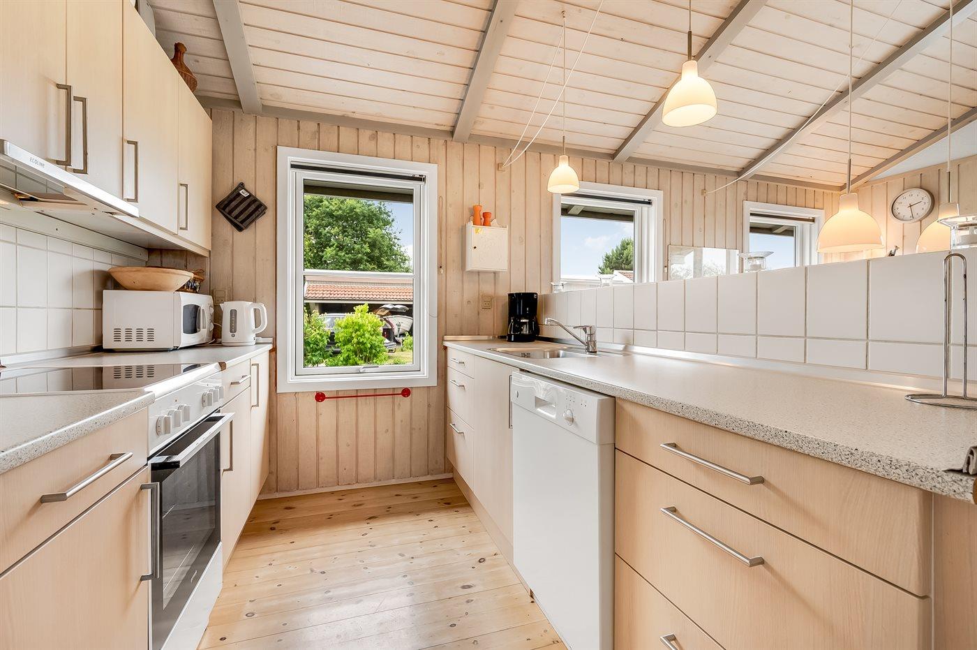 Køkkenet er udstyret med 1 køleskab. Der er 4 induktionskogeplader, varmluftovn, mikrobølgeovn samt opvaskemaskine.