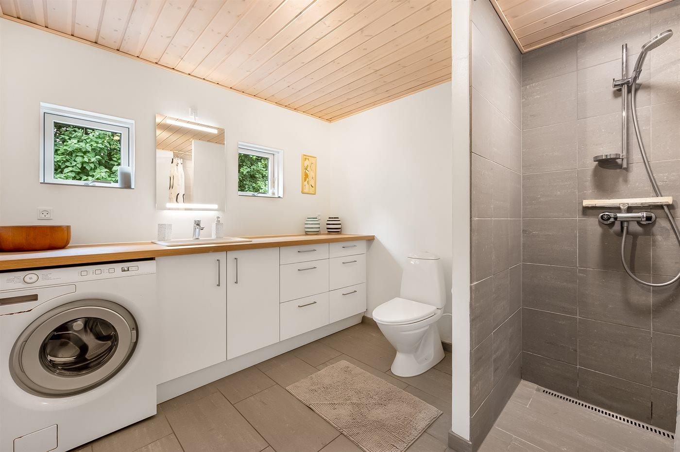 Der er 1 badeværelse med bruseniche og 2 toiletter, heraf 1 gæstetoilet. Der er gulvvarme på 1 badeværelse. Der er gulvvarme på gæstetoilettet.