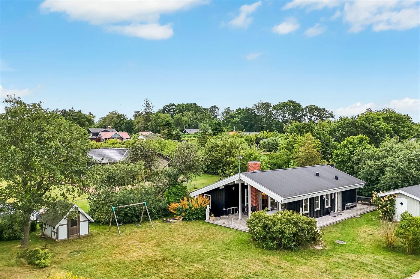 Hyggeligt sommerhus nær stranden i Ebeltoft med stor naturgrund, legeplads og moderne faciliteter til familien.