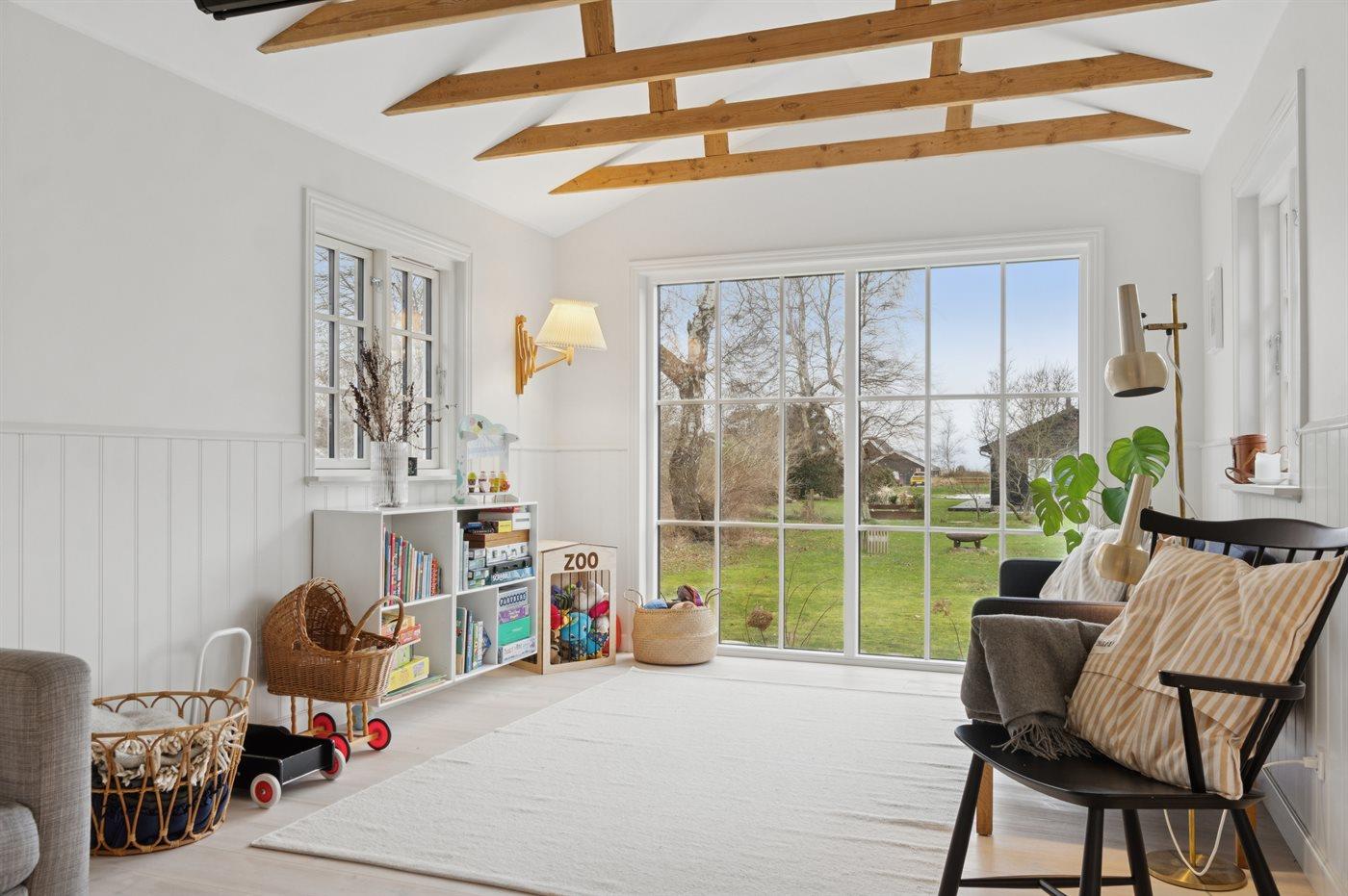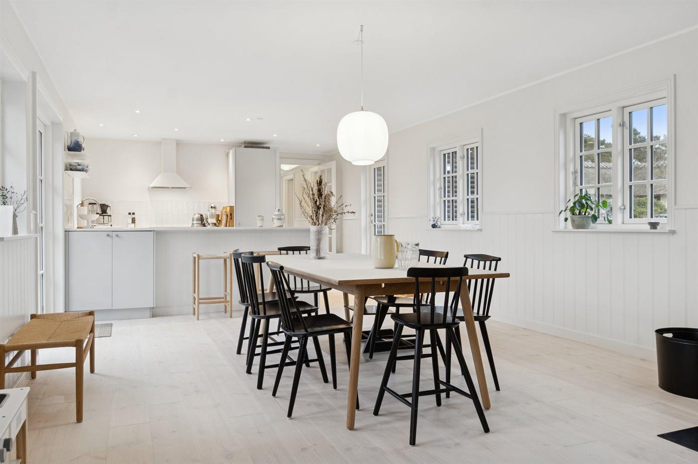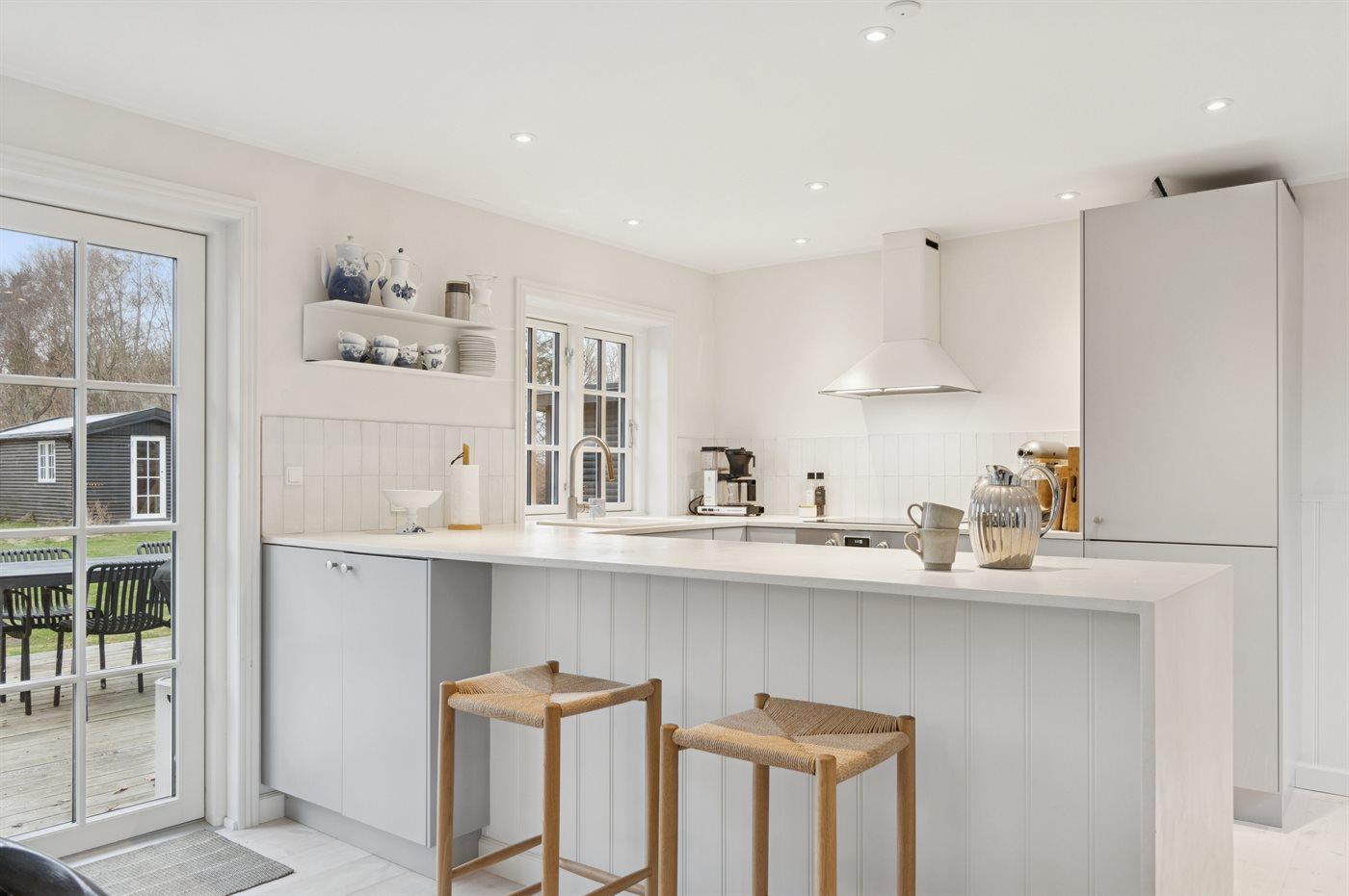 Huset fremstår lyst og indbydende med en velholdt og opdateret indretning, hvor stue og køkken flyder naturligt sammen. Her er der tænkt på detaljerne, og en nænsom modernisering gør huset både funktionel og behagelig at opholde sig i – uden at det har mistet sin oprindelige sommerhus-charme. De store vinduer lukker lyset ind og giver kig til haven.