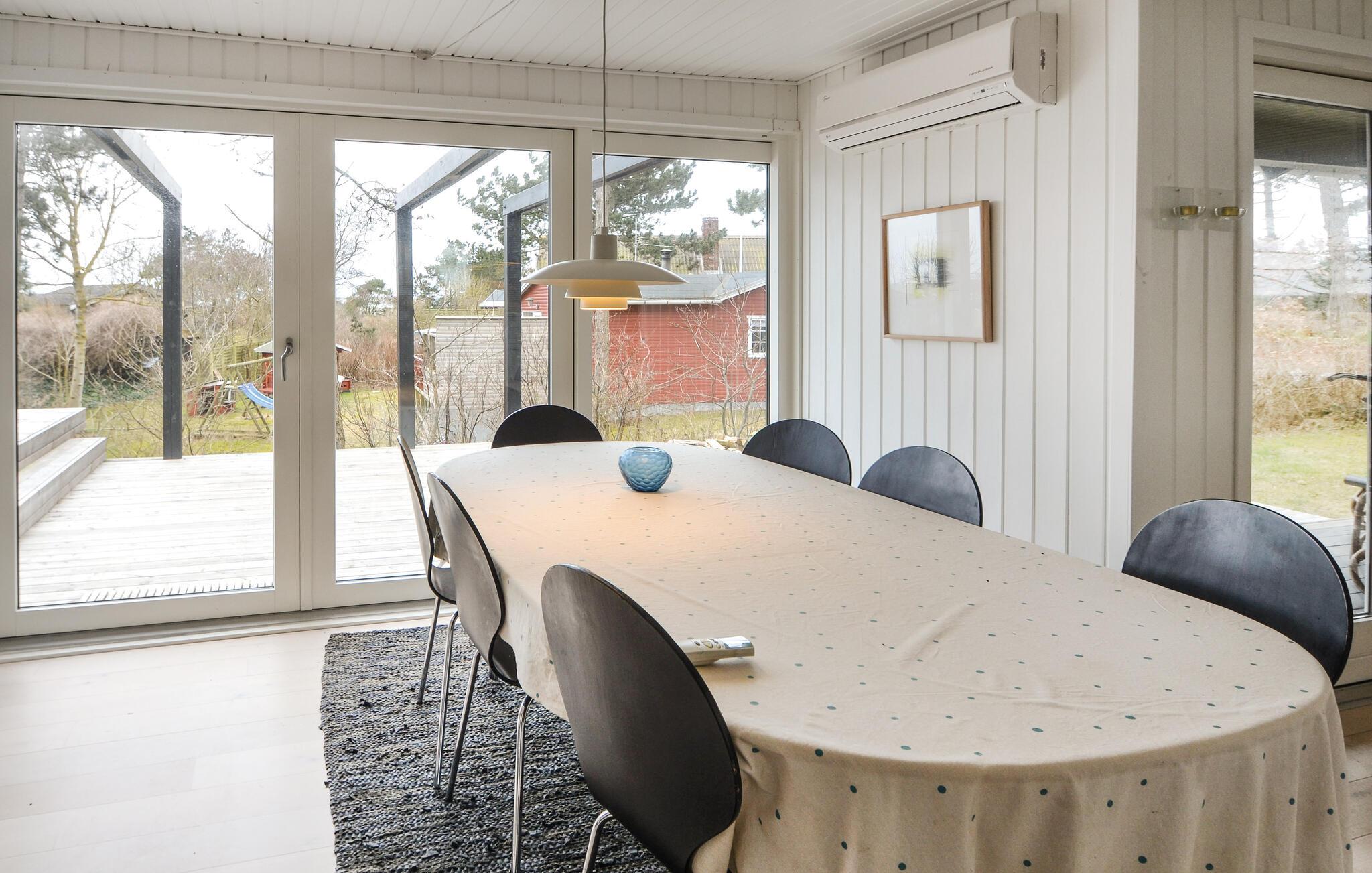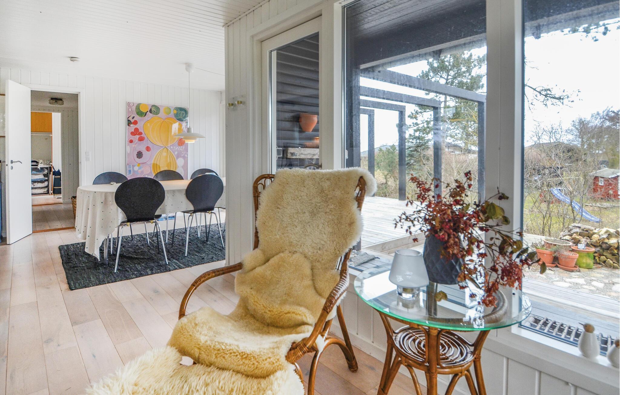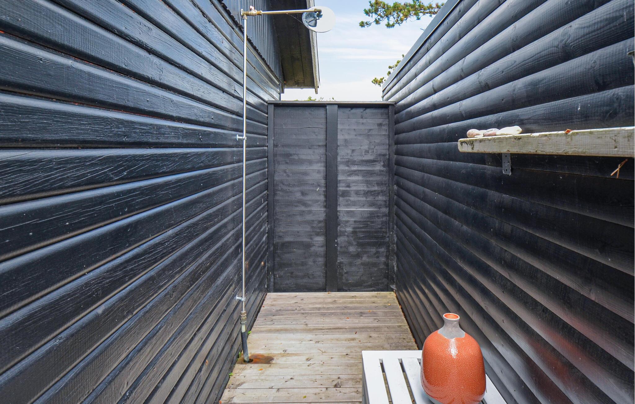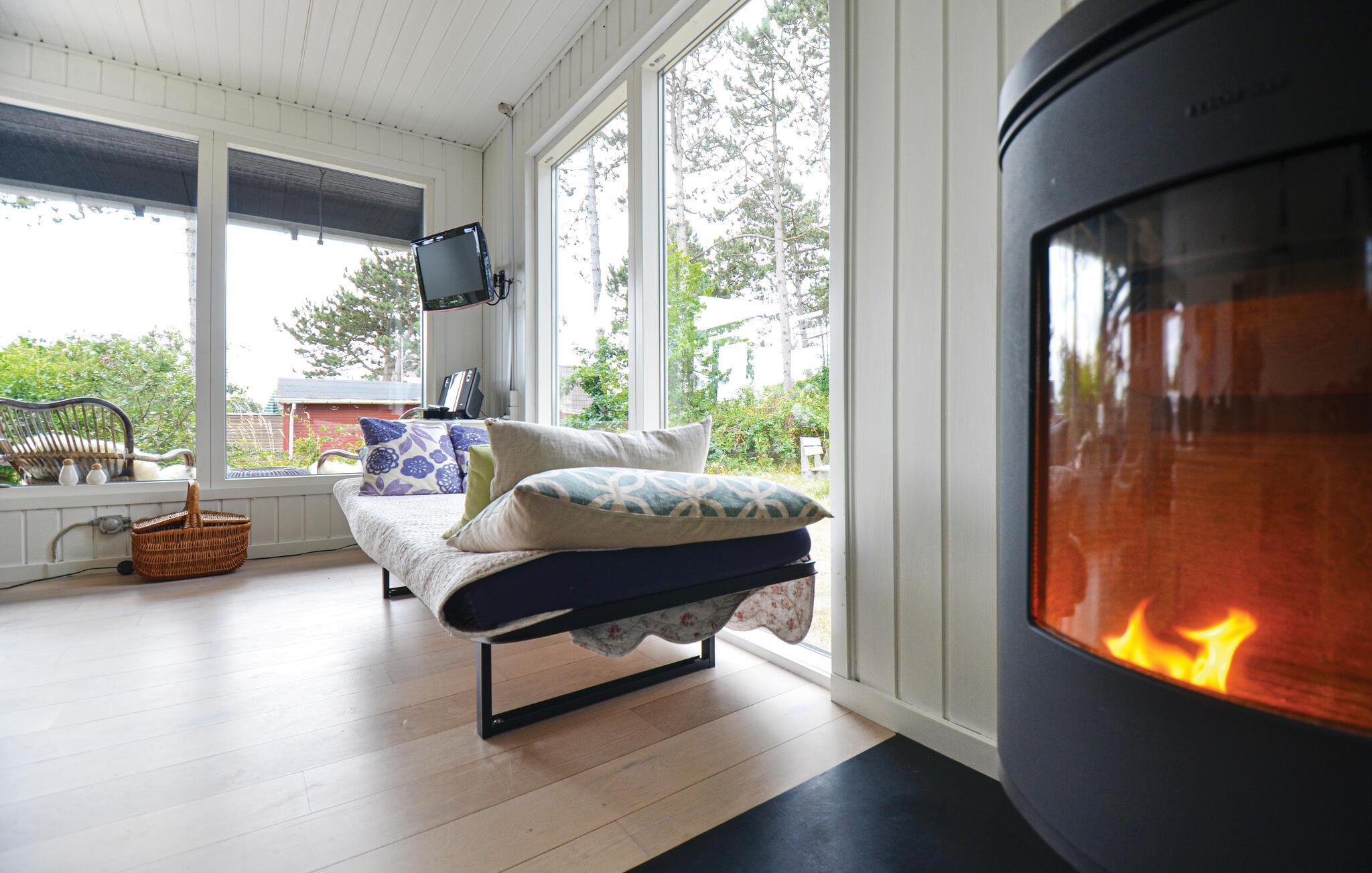 Hold ferie i 2. række til havet med en pragtfuld udsigt over vandet fra den store træterrasse, hvor I kan se øen Hjelmen i det fjerne. Huset er indrettet med gode store soveværelser, et dejligt spisekøkken og pæn møbleret stue holdt i god feriestil. Nyd udelivet på de store terrasser med grillmad og feriehygge. Stranden og området er attraktivt med den "vilde" natur, det friske vand, en blanding af sand og sten og gode muligheder for kystfiskeri. Fra huset går et stisystem direkte til vandet. Huset er udstyret med en hurtig fiberforbindelse.(50 / 50 mbit). Der er ingen afskærmning omkring terrassen.