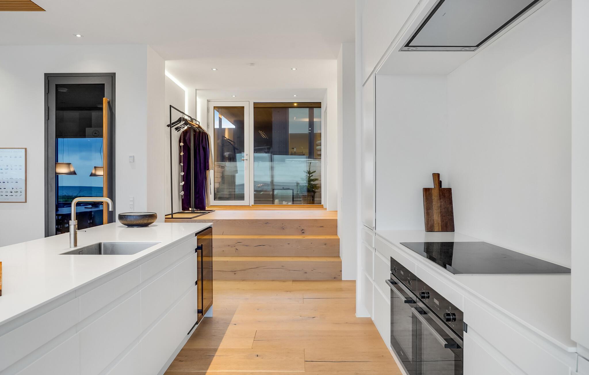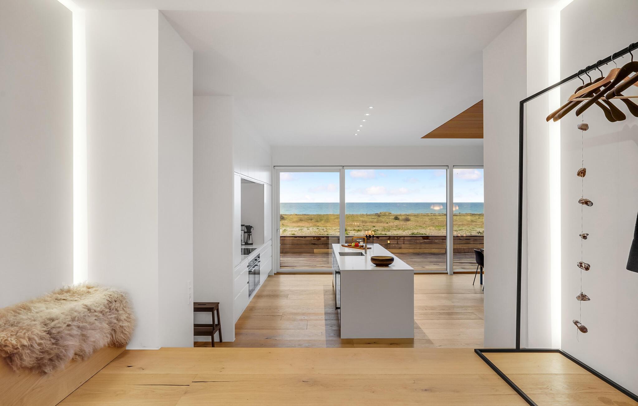 Blot 50 meter fra vandet ligger dette feriehus, hvor arkitektur, design og faciliteter er smukt og enkelt afstemt. Roen sænker sig, fra det øjeblik i træder ind i boligen, hvor I kan kigge direkte ud på Kattegats blå hav, som er et dejligt syn i al slags vejr. Boligens lækre indretningsløsninger gør det nemt at slappe af, og samtidig kan fylde dagene med hyggelige fællesaktiviteter som bordtennis eller et træningsprogram, som giver sved på panden.