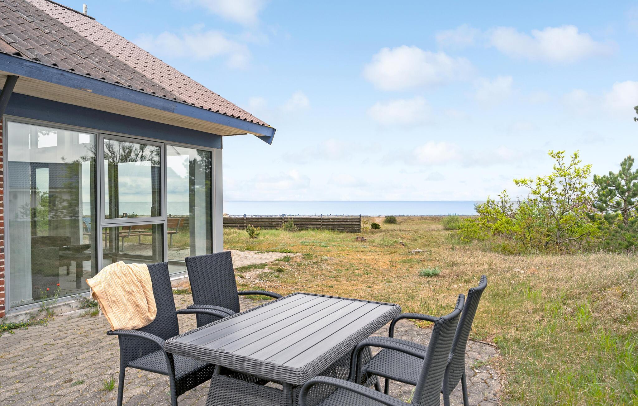 Hold ferie helt ud til havet, med en pragtfuld 180 graders udsigt udover stranden og havet og ud til Hjelmen.