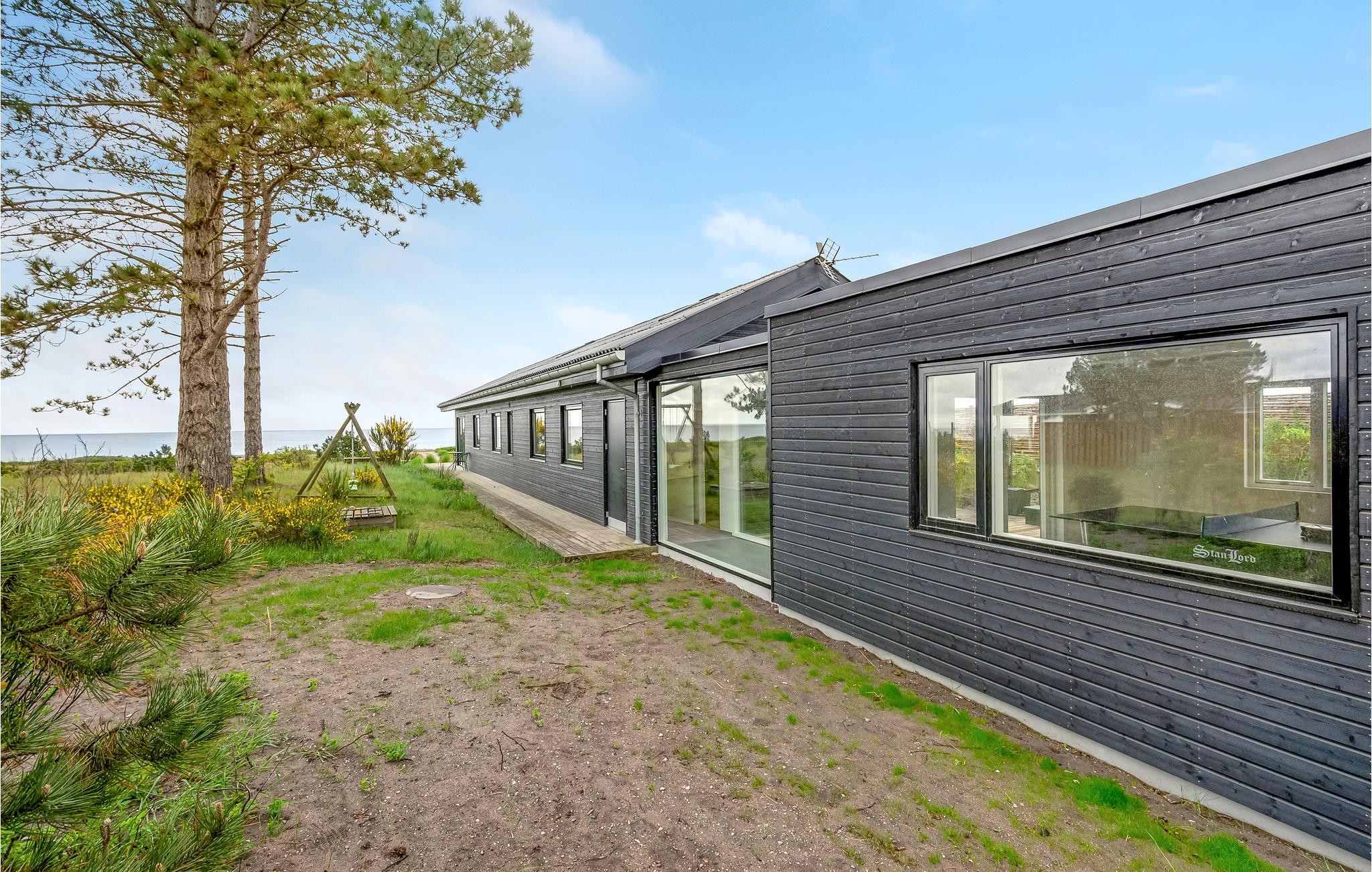 Moderne feriehus med vildmarksbad og panoramaudsigt, kun 100 m fra sandstranden ved Dråby Strand.