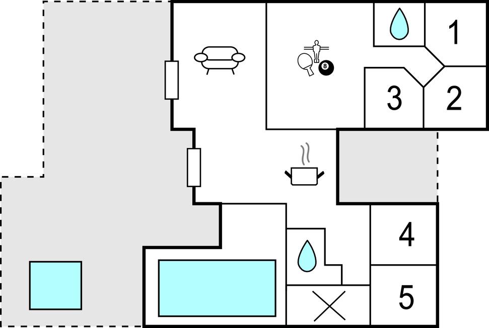 Rummeligt poolhus med spabad, sauna og en række komfortable og familievenlige faciliteter.