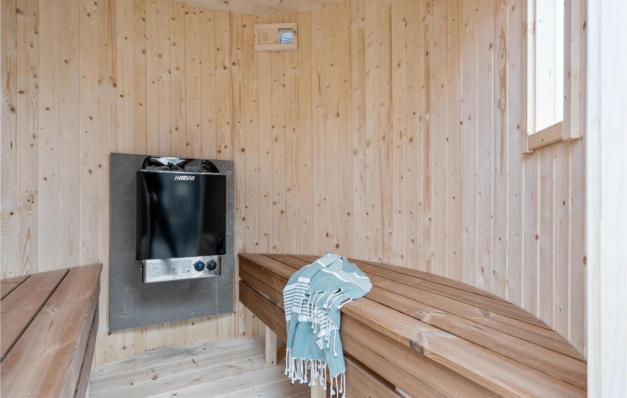 Rummeligt poolhus ved Over Dråby Strand med spabad, sauna og mange familievenlige faciliteter.