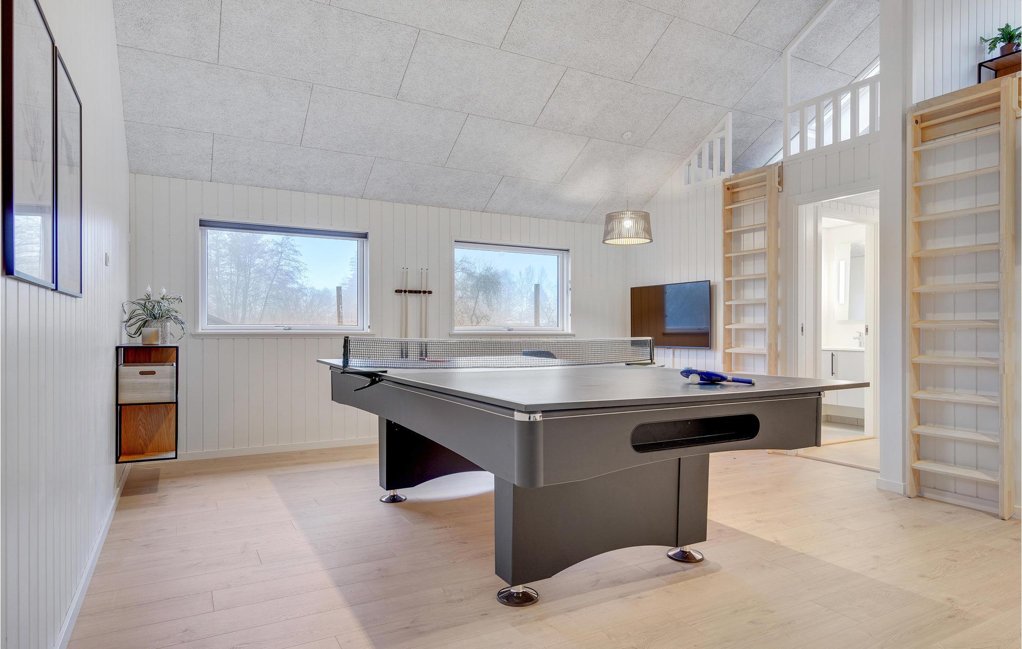Uden for Jægerspris i landsbyen Over Dråby finder I dette skønne feriehus med plads til op til flere familier. Glæd jer til at spille bordfodbold, Playstation eller at udfordre hinanden til et spil bordtennis. Nyd wellness i saunaen eller i det udendørs spabad efter en begivenhedsrig dag. Naturejendommen byder på masser af plads til, at børn, voksne og firbenede venner kan lege og slappe af udendørs. De små kan hygge sig i sandkassen eller legetårnet, mens I forbereder en lækker grillmiddag.